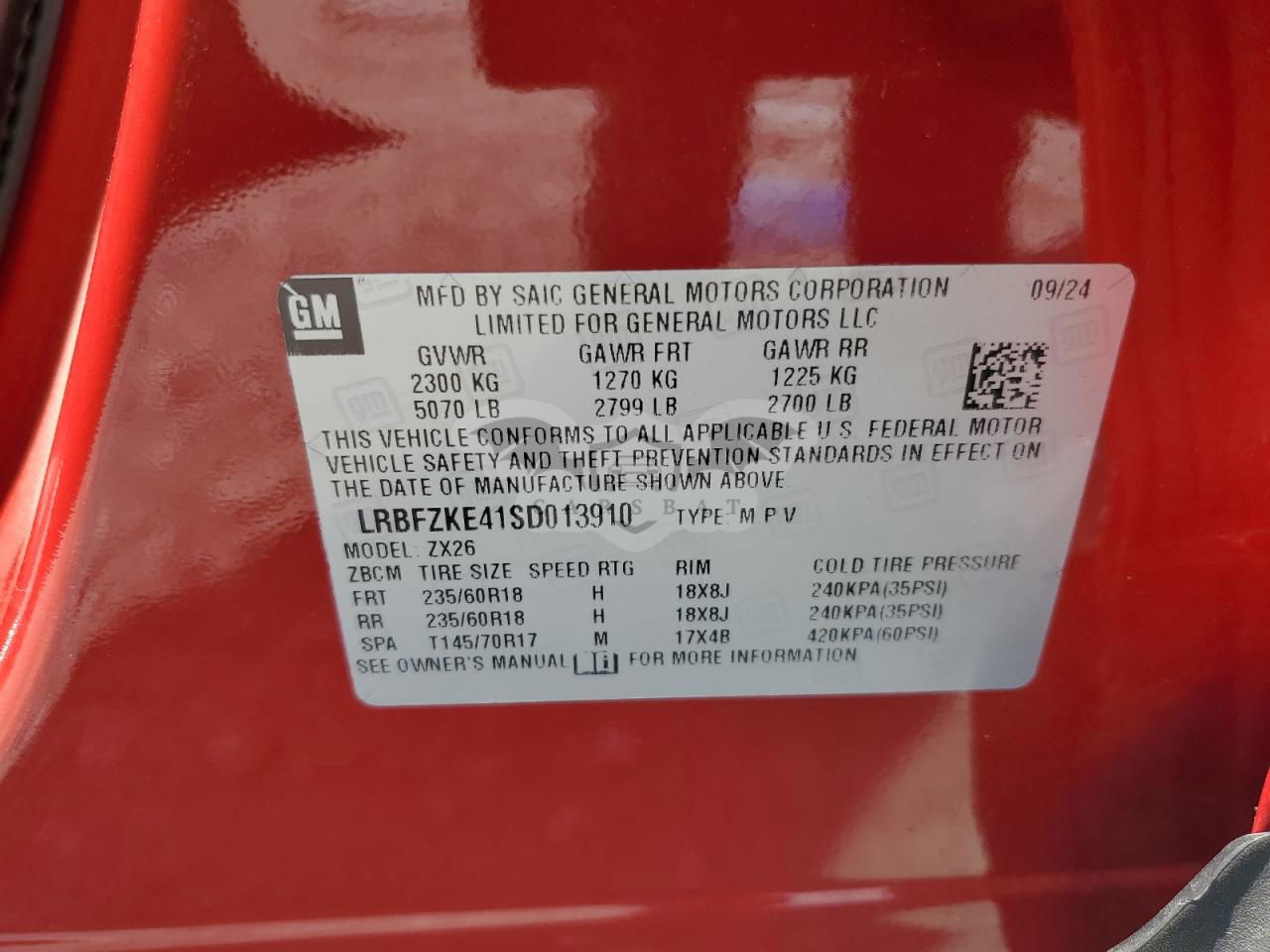 • VIN: LRBFZKE41SD013910