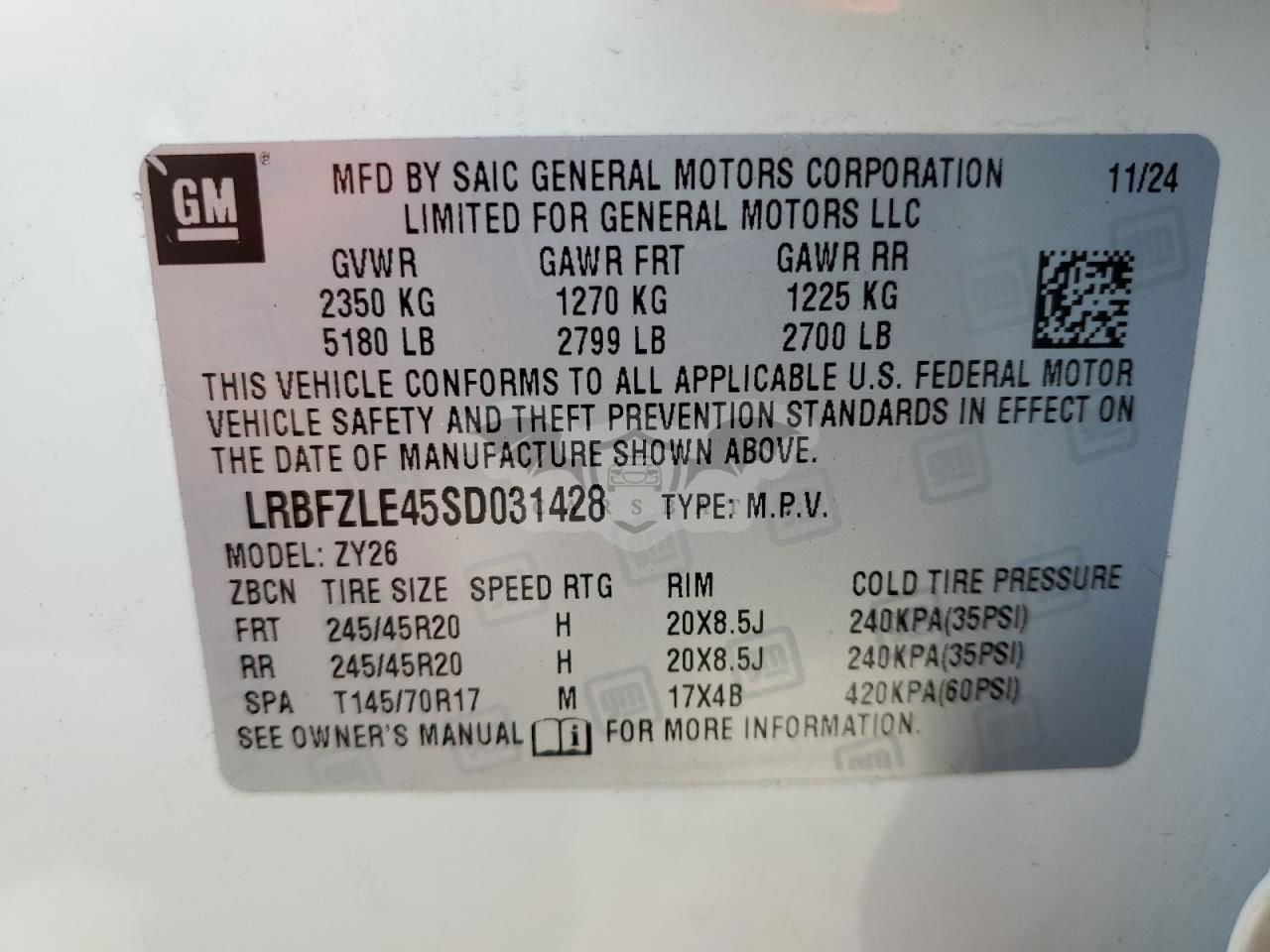 • VIN: LRBFZLE45SD031428