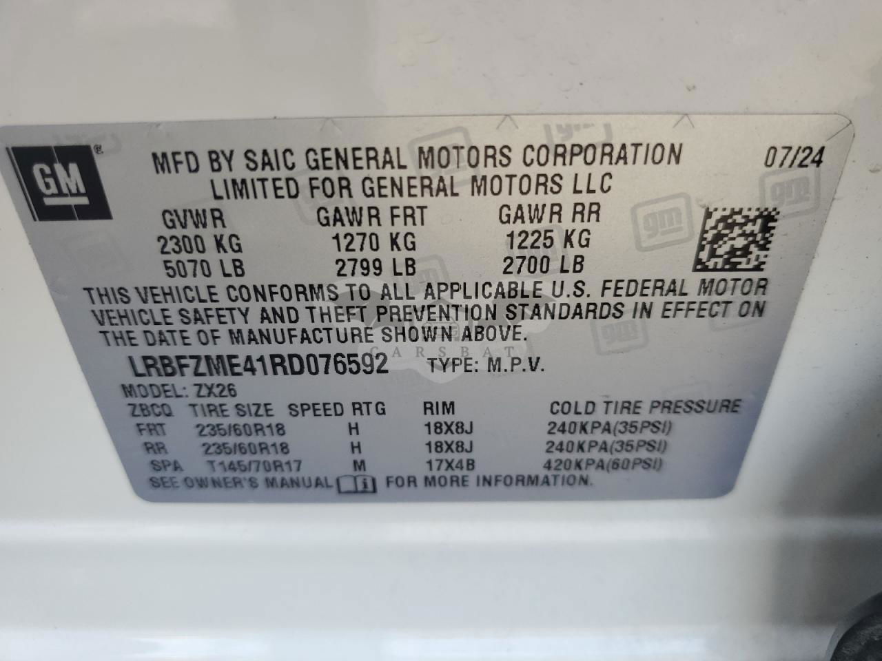 • VIN: LRBFZME41RD076592