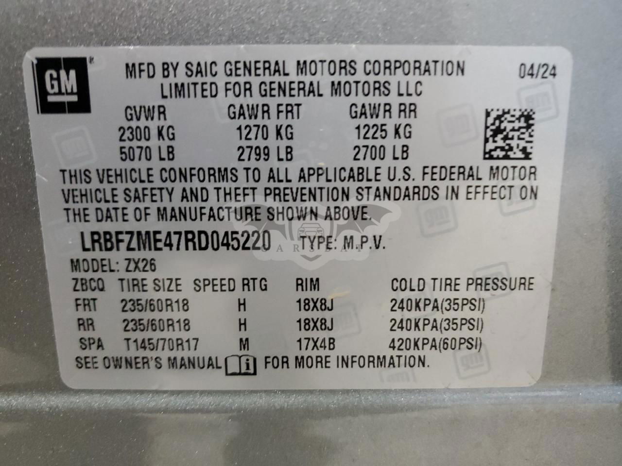 • VIN: LRBFZME47RD045220