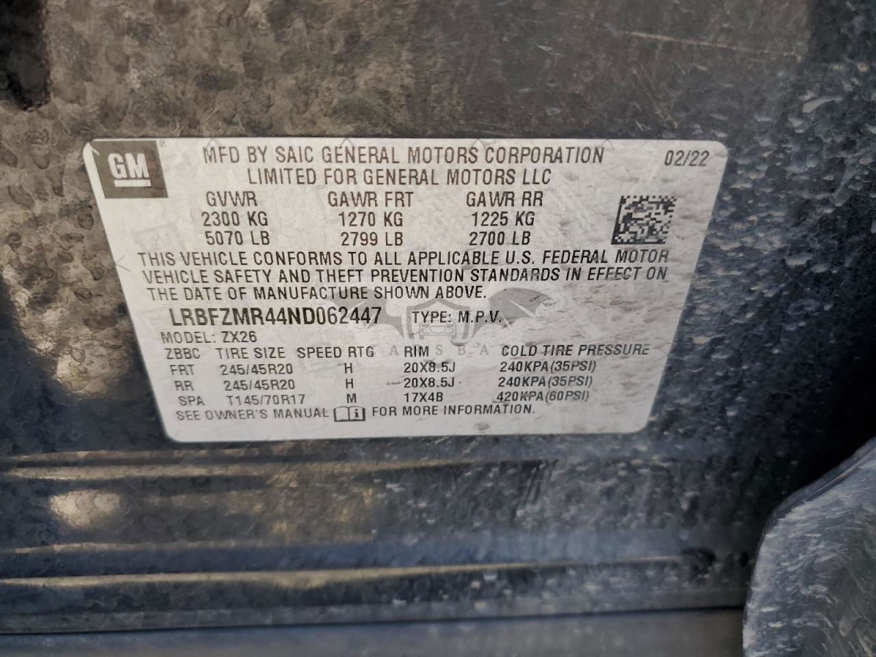 • VIN: LRBFZMR44ND062447
