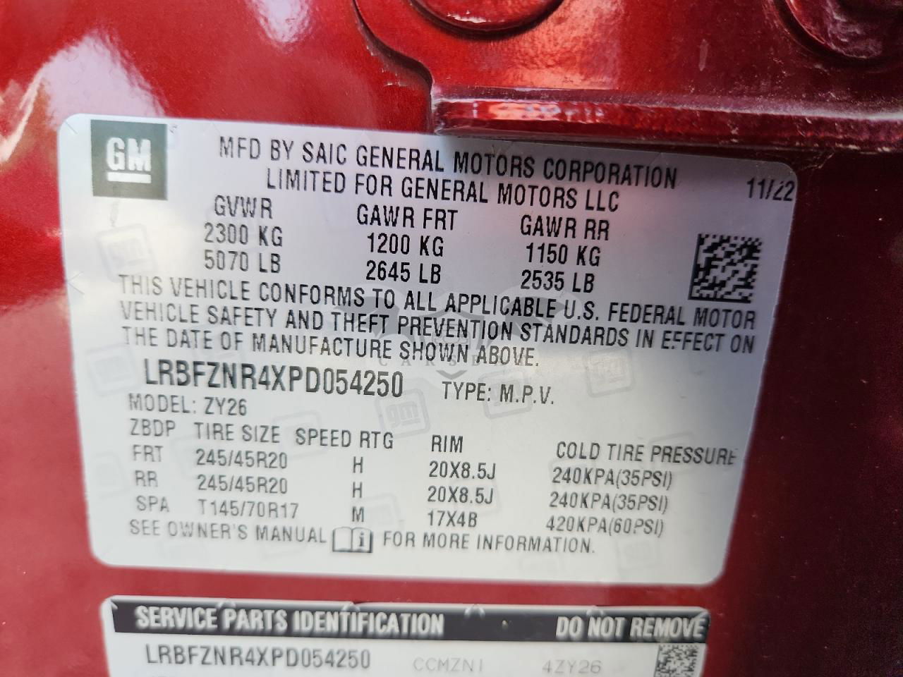 • VIN: LRBFZNR4XPD054250