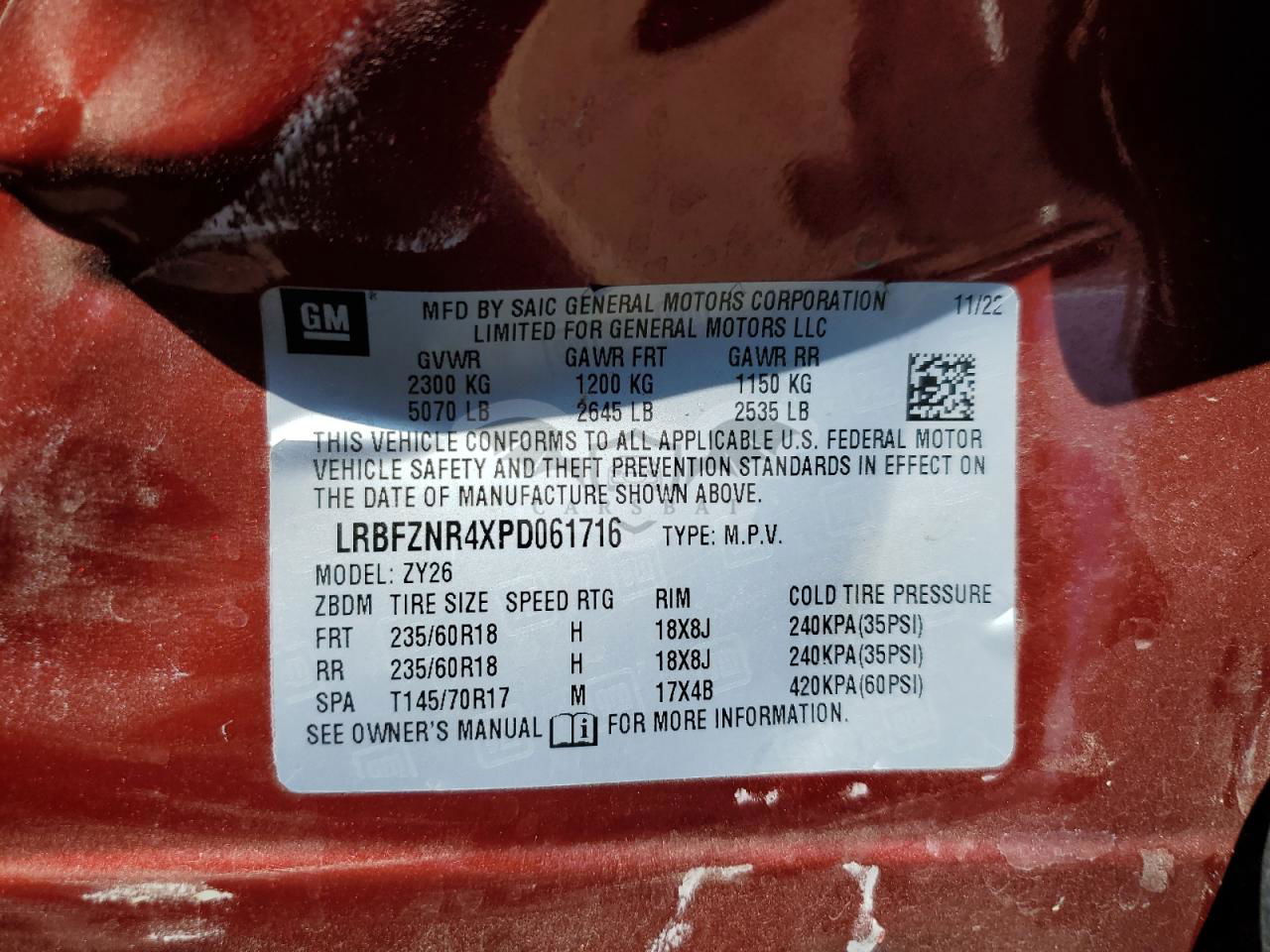 • VIN: LRBFZNR4XPD061716