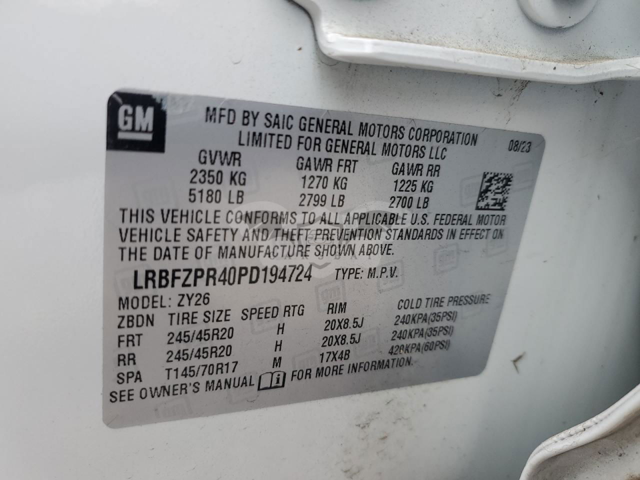• VIN: LRBFZPR40PD194724