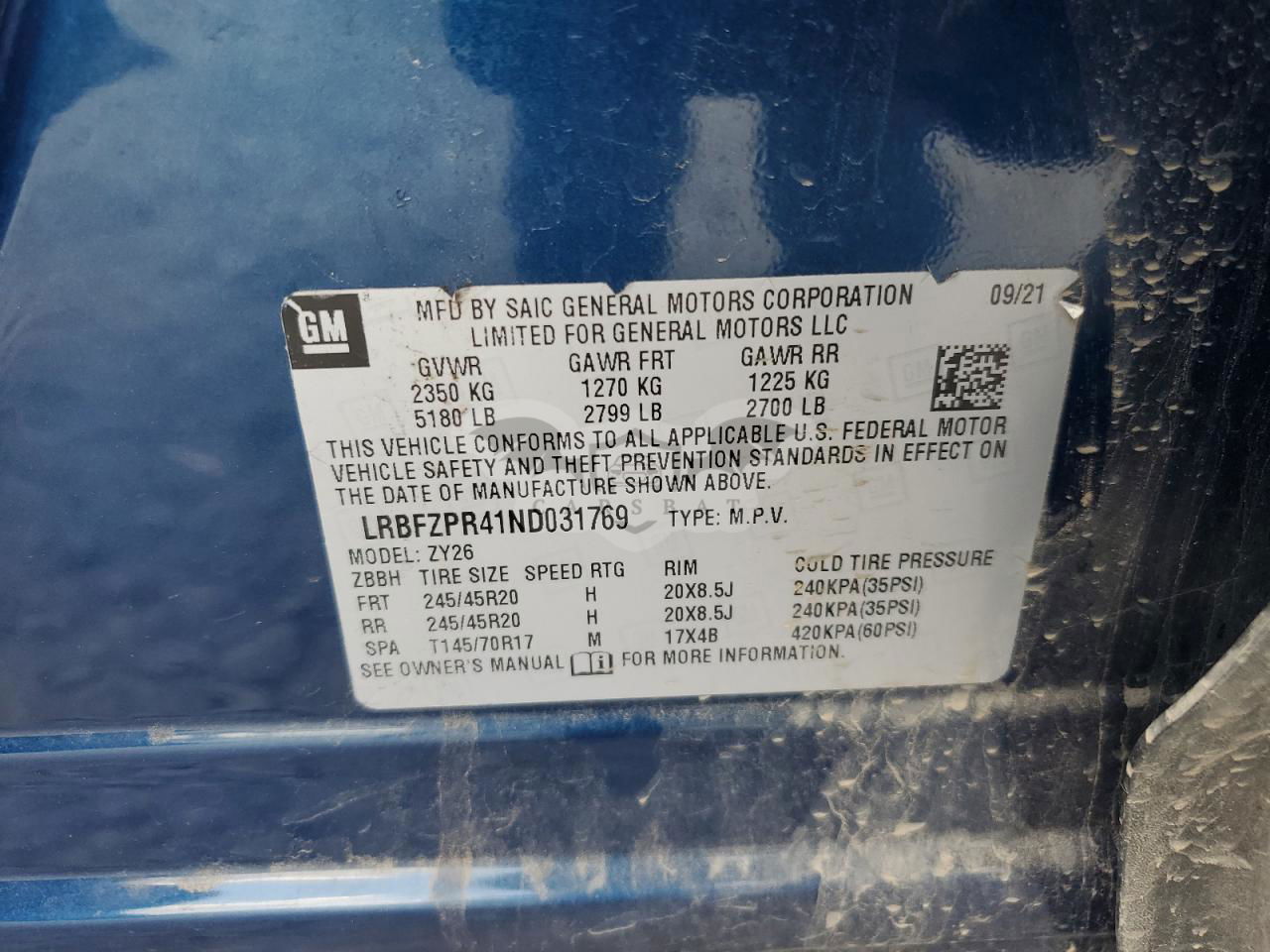 • VIN: LRBFZPR41ND031769