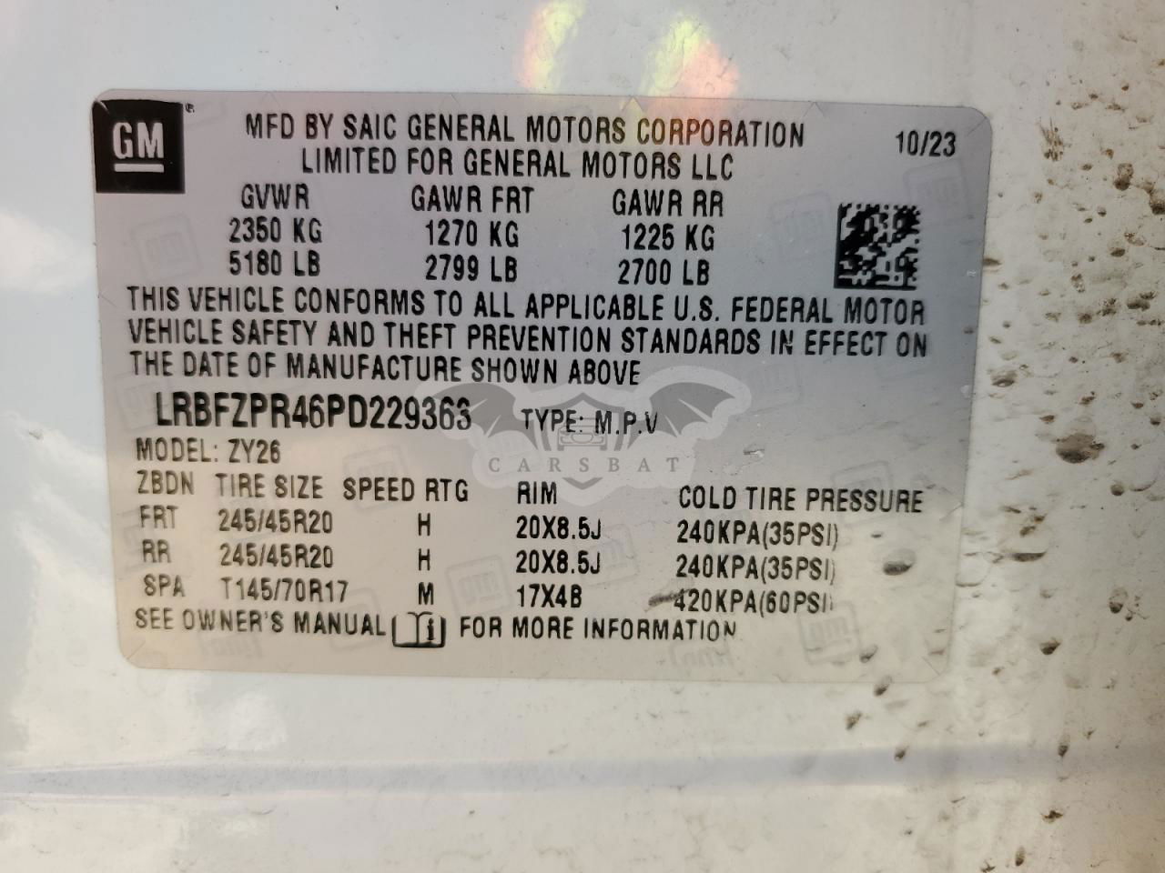 • VIN: LRBFZPR46PD229363