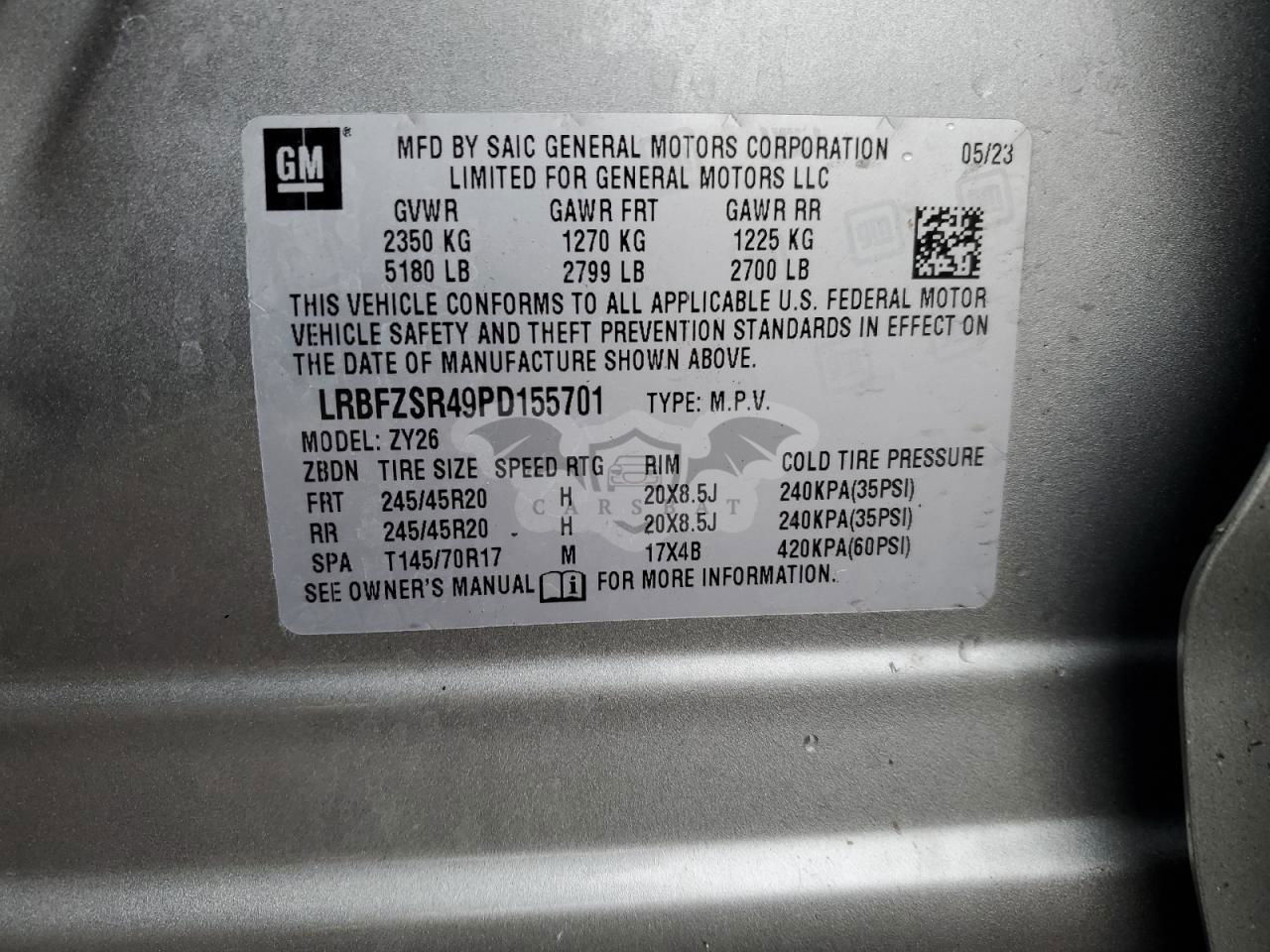 • VIN: LRBFZSR49PD155701