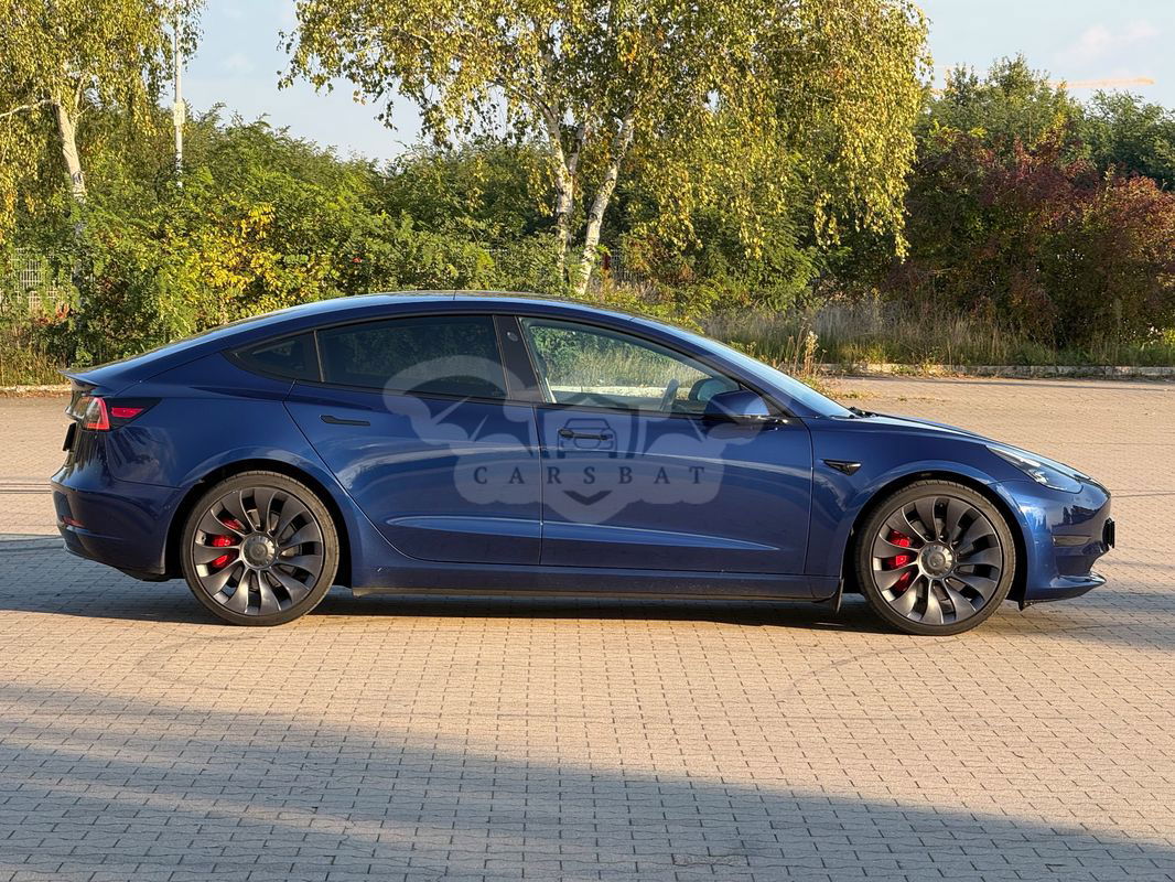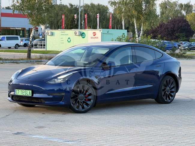 Niebieski Tesla Model 3 Performance AWD 2022 roku | Elektryczny