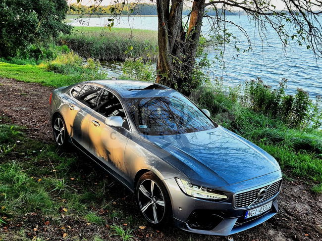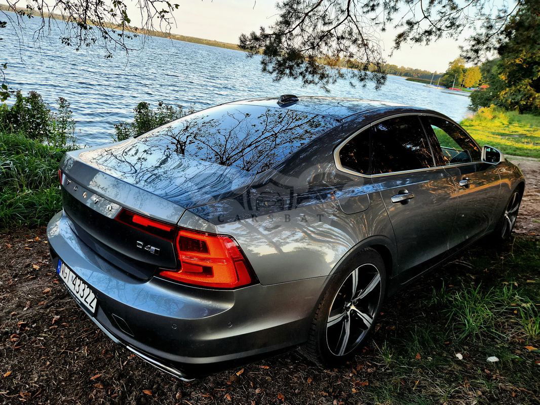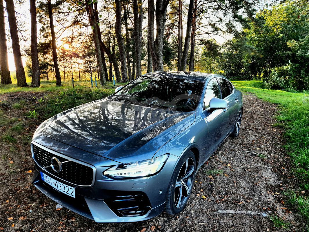 Szary Volvo S90 D4 AWD R-Design 2017 roku | Diesel