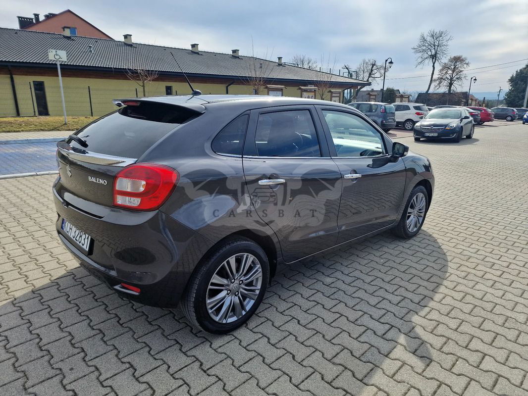 Suzuki Baleno 1.0T 111KM z 2018r Najbogatsza wersja wyposażenia, m. in. Światła Xenon z LED, System bez kluczykowy - Free hands, Tempomat aktywny, Android Auto / Apple Car - umożliwia odtwarzanie muzyki przez Bluetooth, Kamera cofania, Klimatyzacja automatyczna, Światła LED, podgrzewane fotele, system głośnomówiący, system Start-Stop, czujniki parkowania tył, nawigacja GPS, radio CD z Bluetooth, USB, AUX, felgi aluminiowe Samochód sprowadzony ze Szwajcarii, Samochód w bardzo dobrym stanie, zadbany, bezwypadkowy. Serwisowany do końca. Przebieg to 123500 km, potwierdzony książką serwisową Samochód zarejestrowany i ubezpieczony