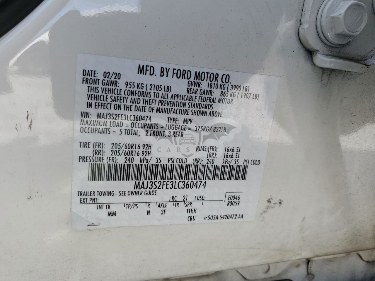 • VIN: MAJ3S2FE3LC360474