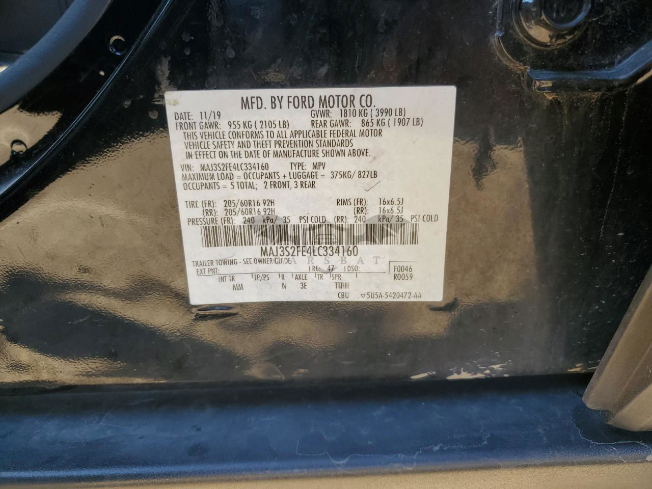 • VIN: MAJ3S2FE4LC334160