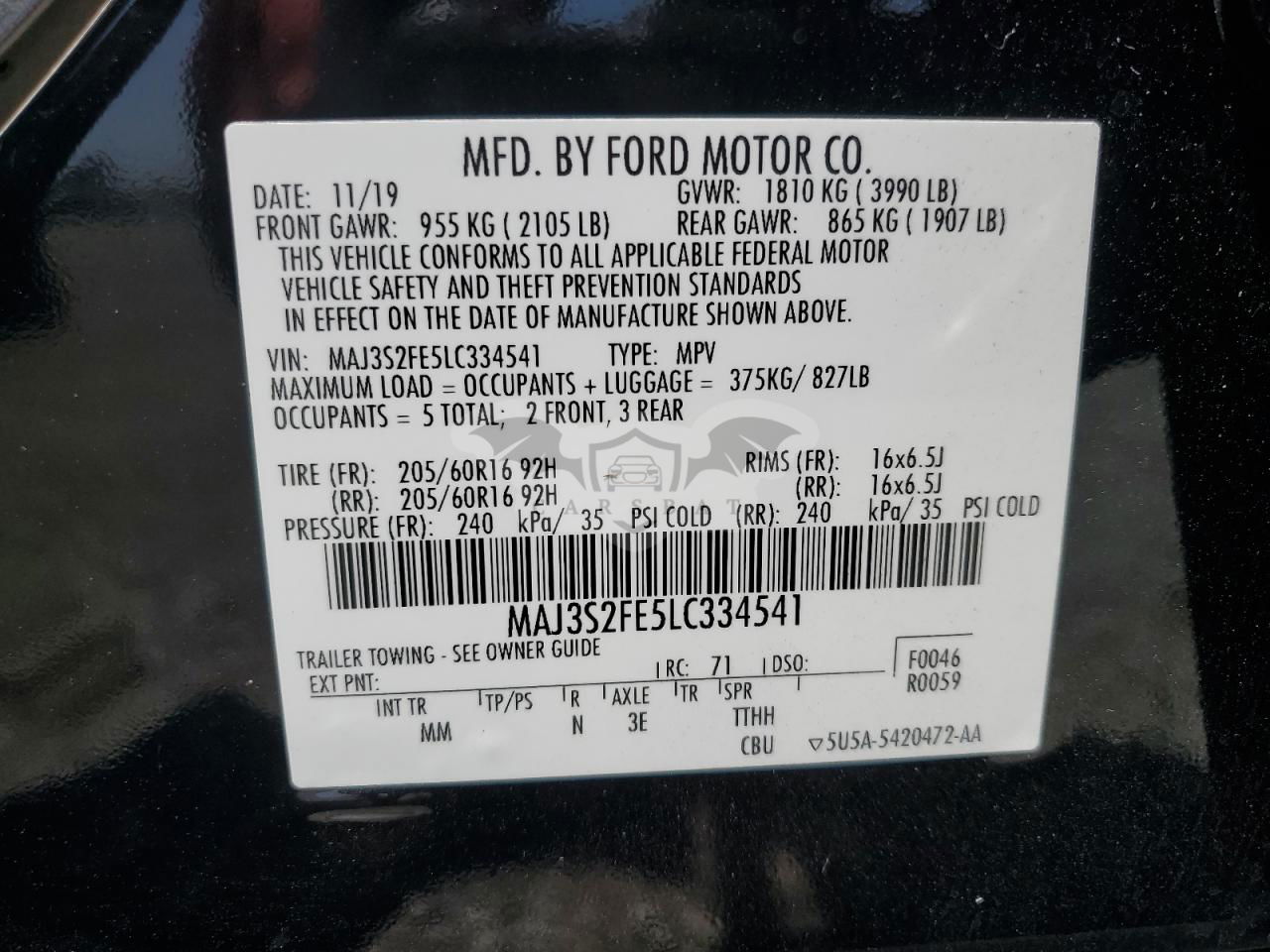 • VIN: MAJ3S2FE5LC334541