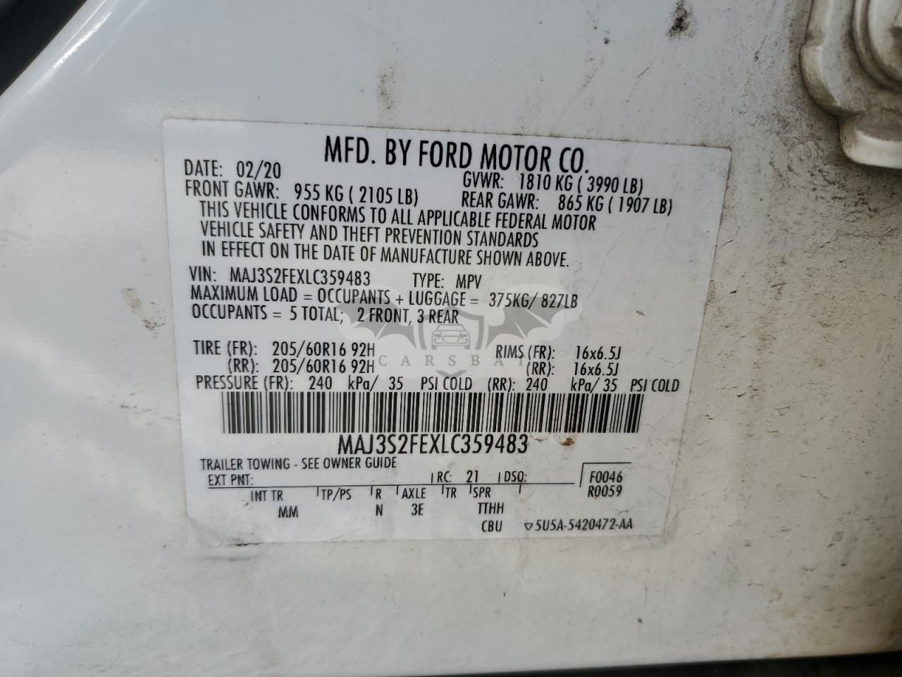 • VIN: MAJ3S2FEXLC359483