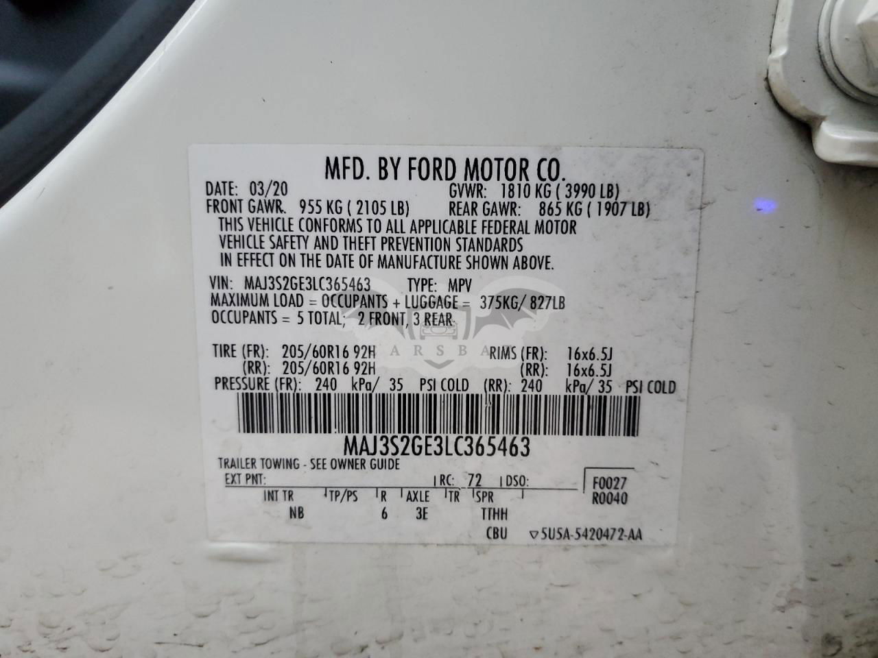 • VIN: MAJ3S2GE3LC365463