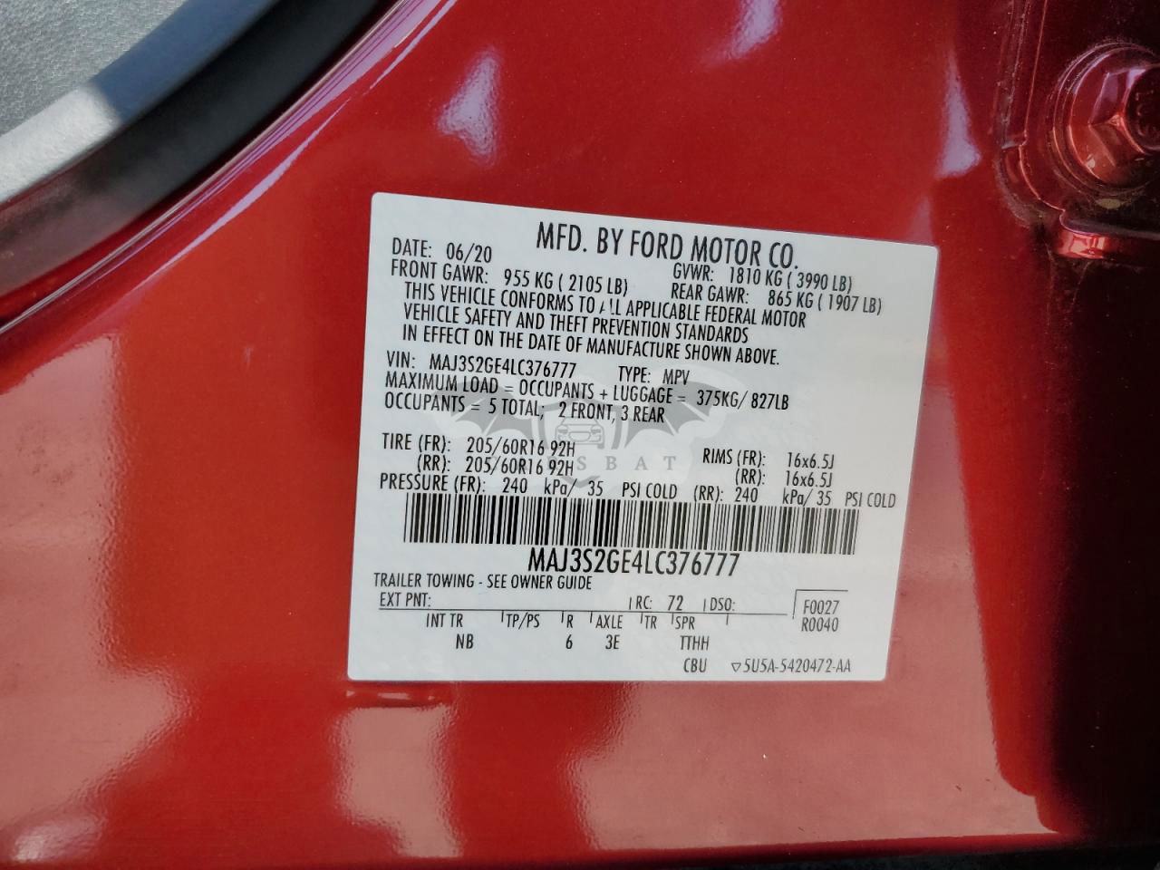 • VIN: MAJ3S2GE4LC376777