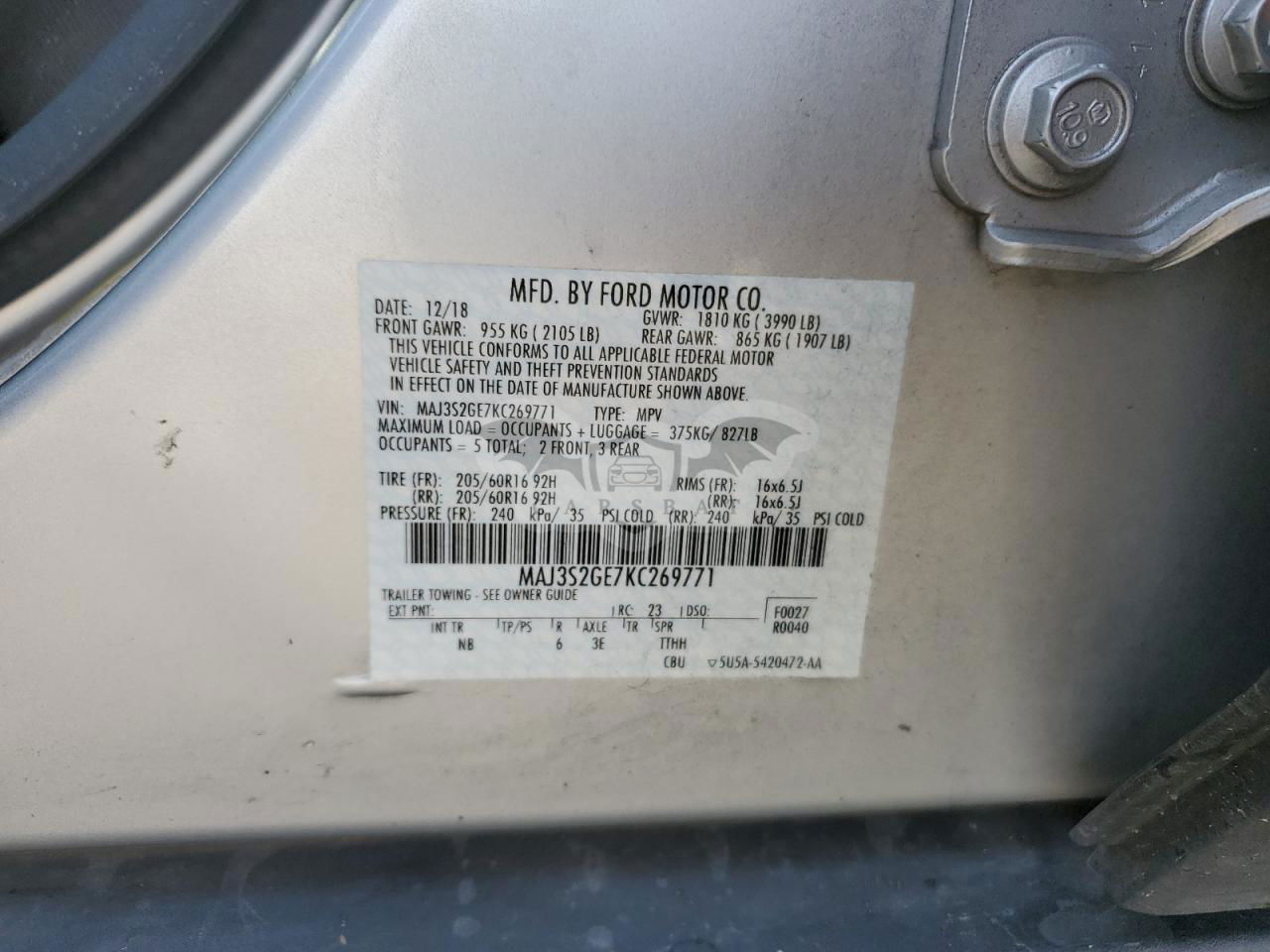 • VIN: MAJ3S2GE7KC269771