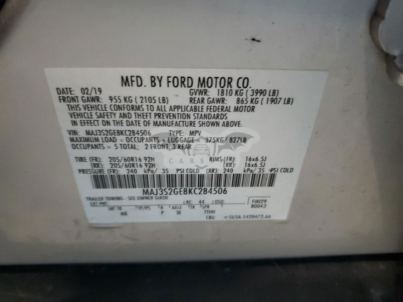 • VIN: MAJ3S2GE8KC284506