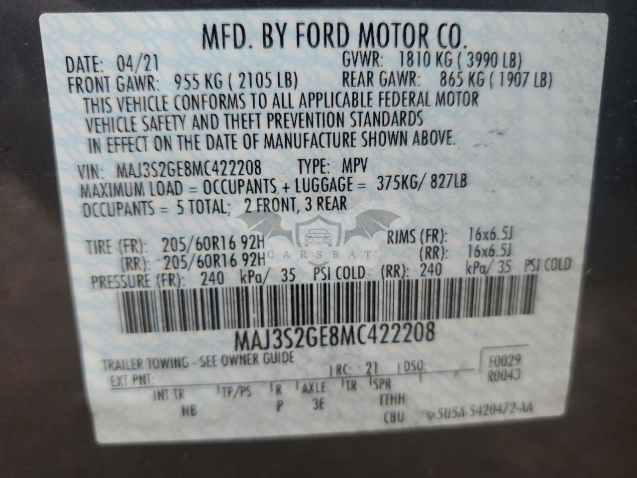 • VIN: MAJ3S2GE8MC422208
