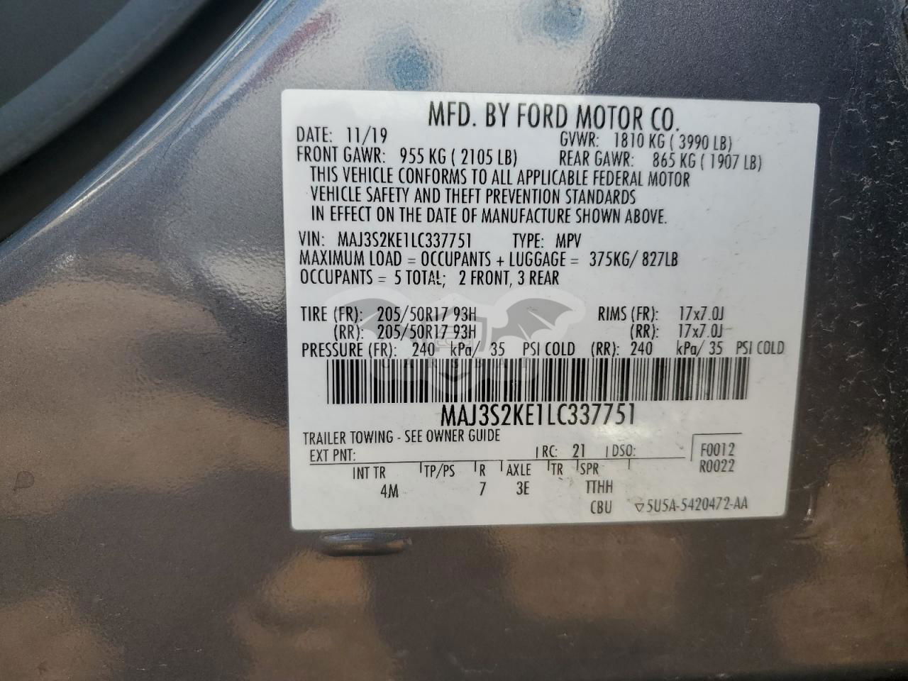 • VIN: MAJ3S2KE1LC337751