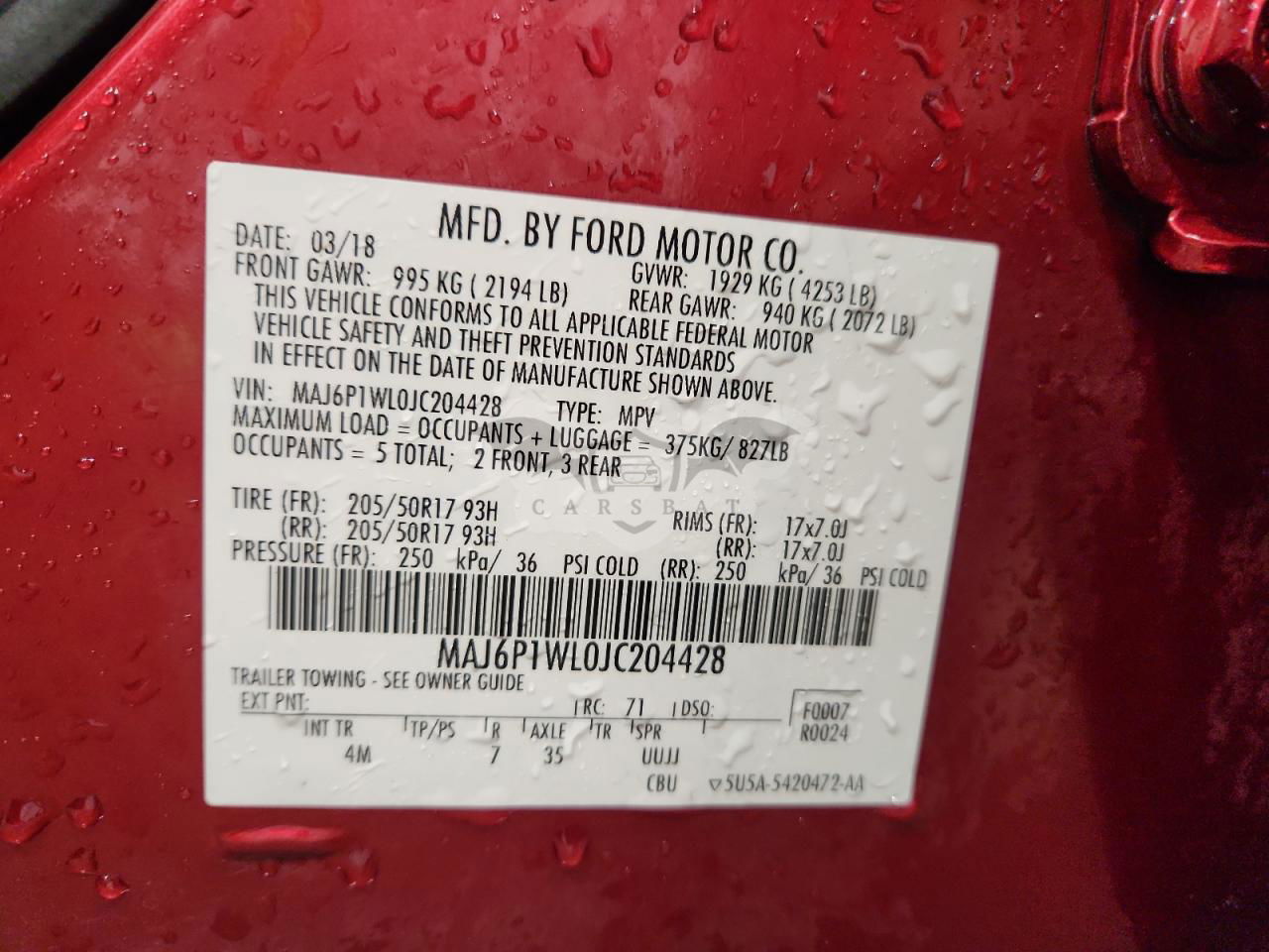 • VIN: MAJ6P1WL0JC204428