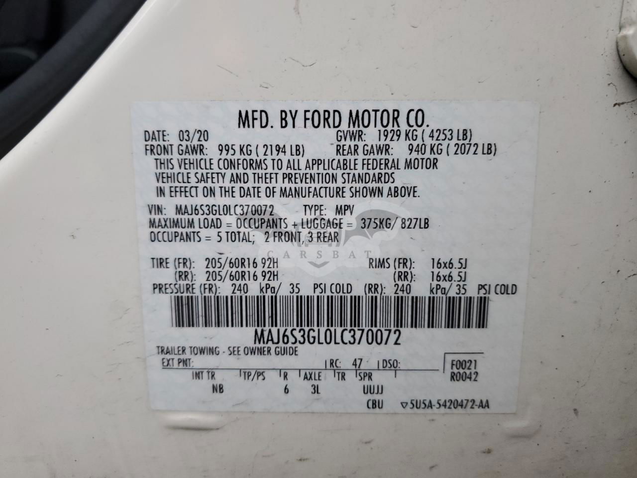 • VIN: MAJ6S3GL0LC370072