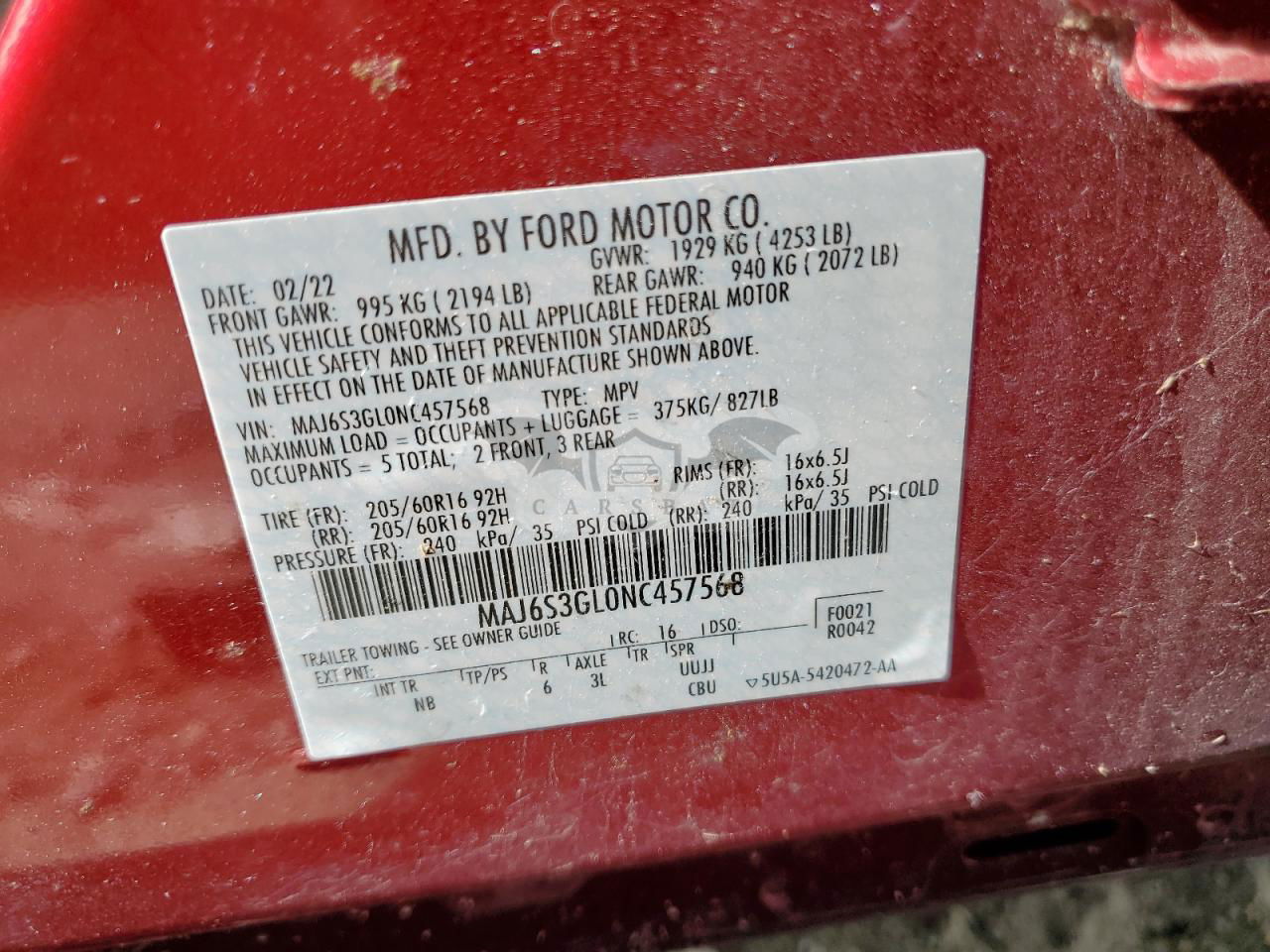 • VIN: MAJ6S3GL0NC457568
