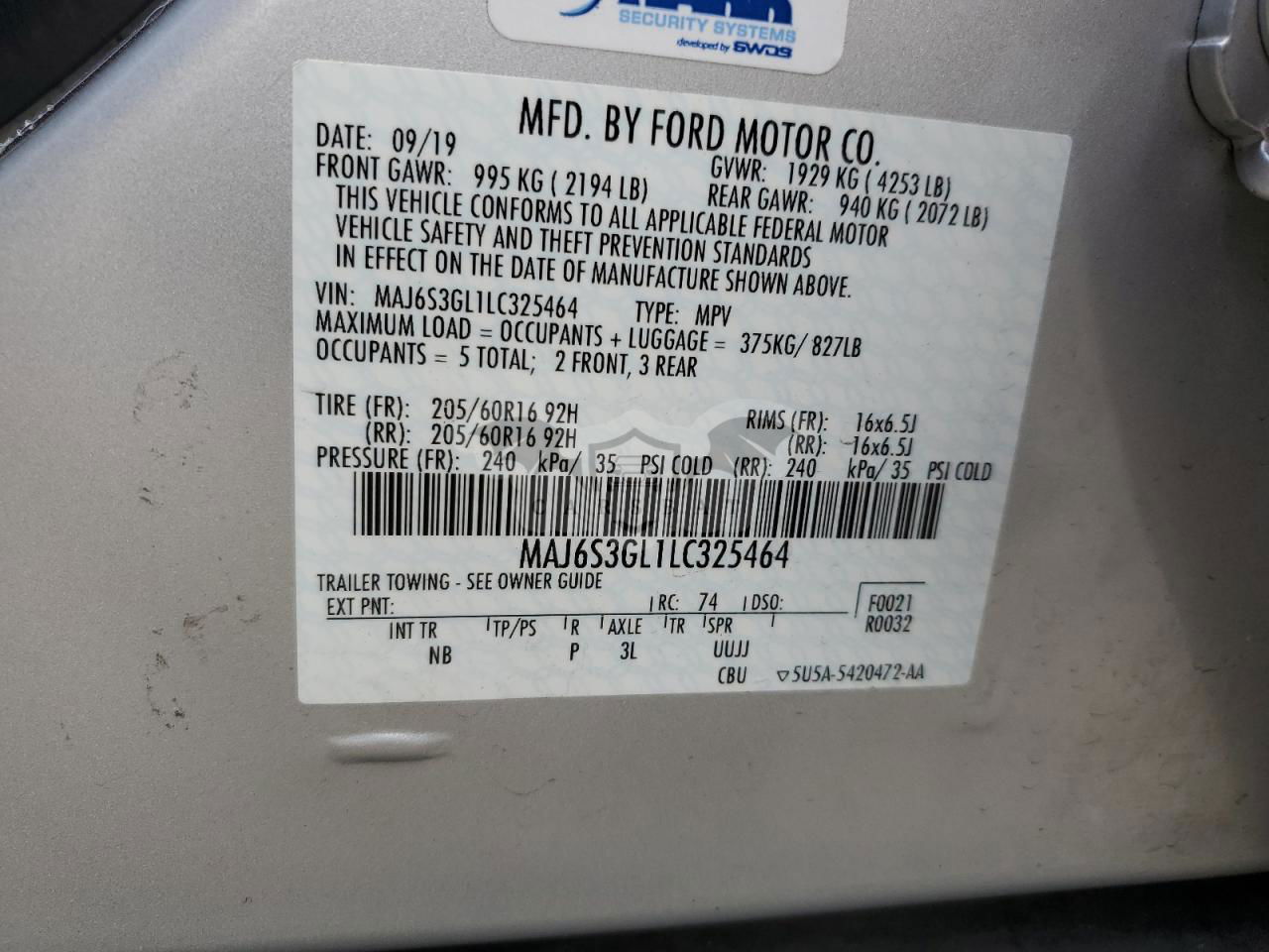 • VIN: MAJ6S3GL1LC325464