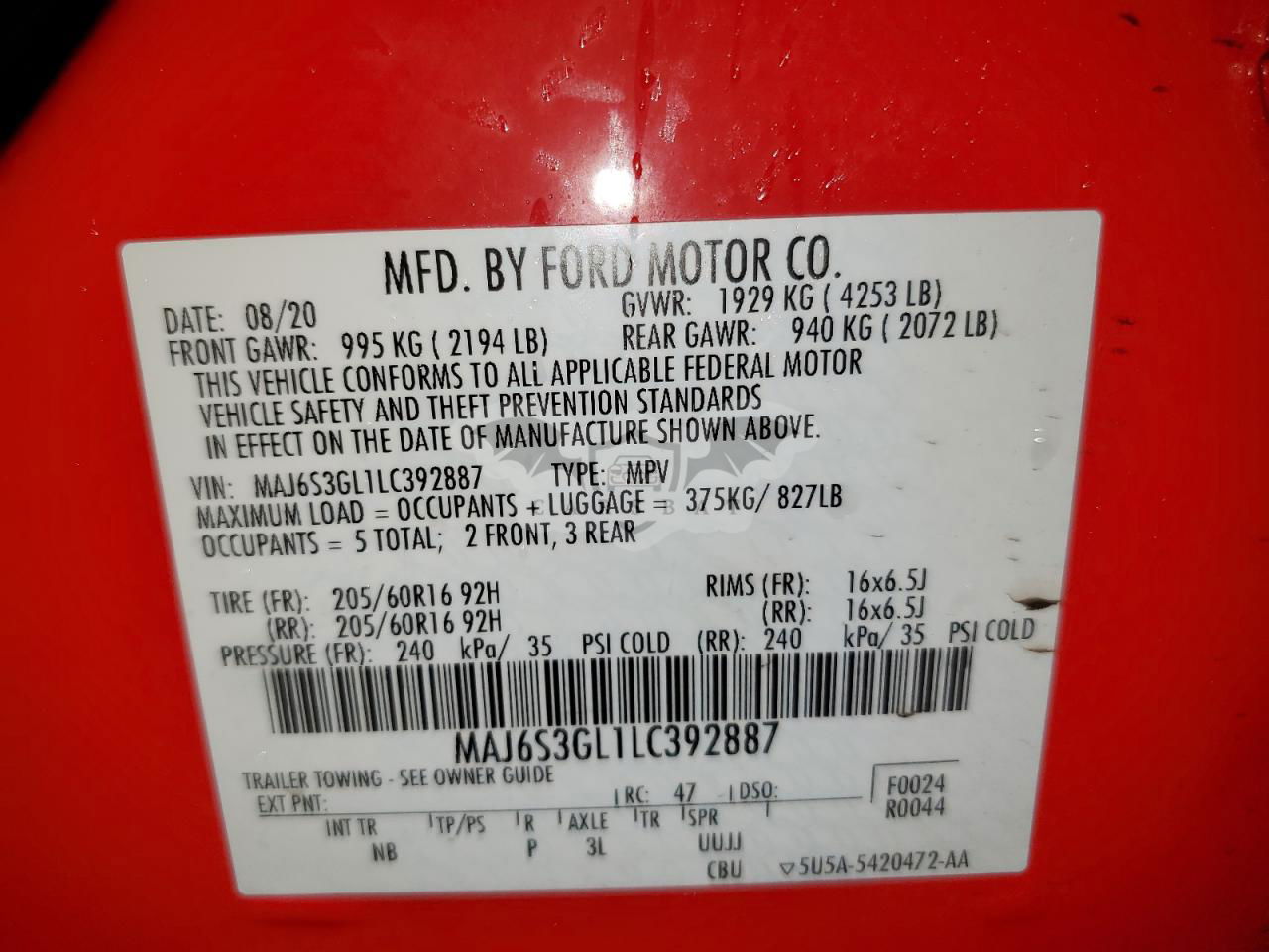 • VIN: MAJ6S3GL1LC392887
