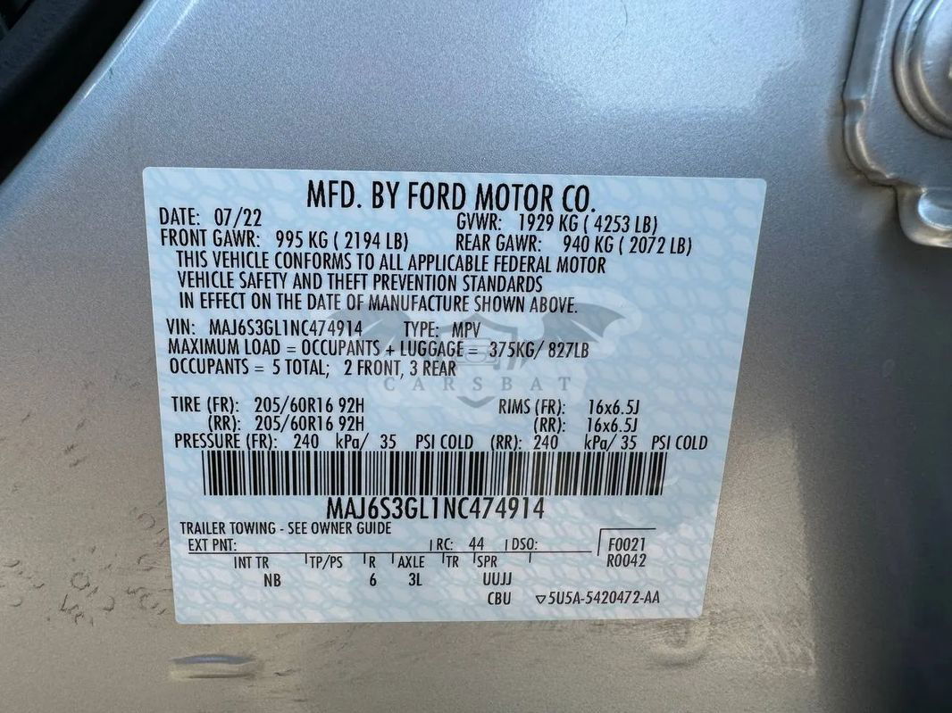 • VIN: MAJ6S3GL1NC474914