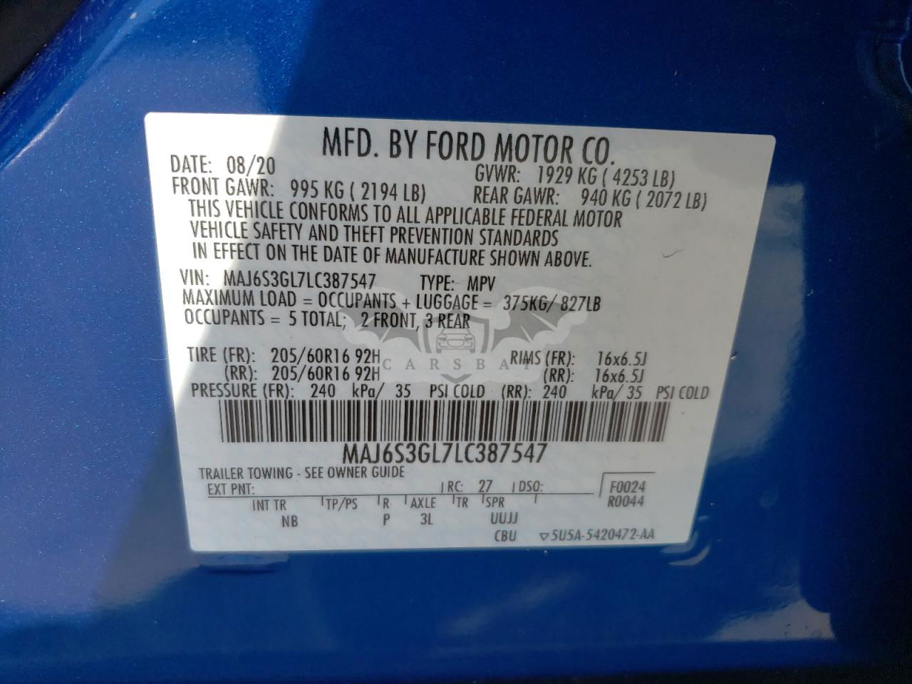 • VIN: MAJ6S3GL7LC387547