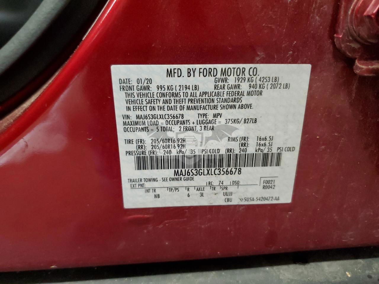 • VIN: MAJ6S3GLXLC356678