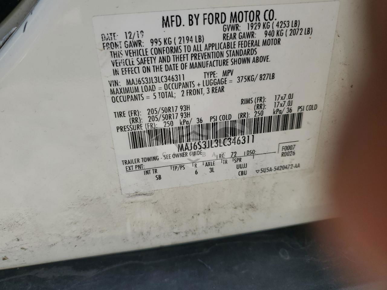 • VIN: MAJ6S3JL3LC346311