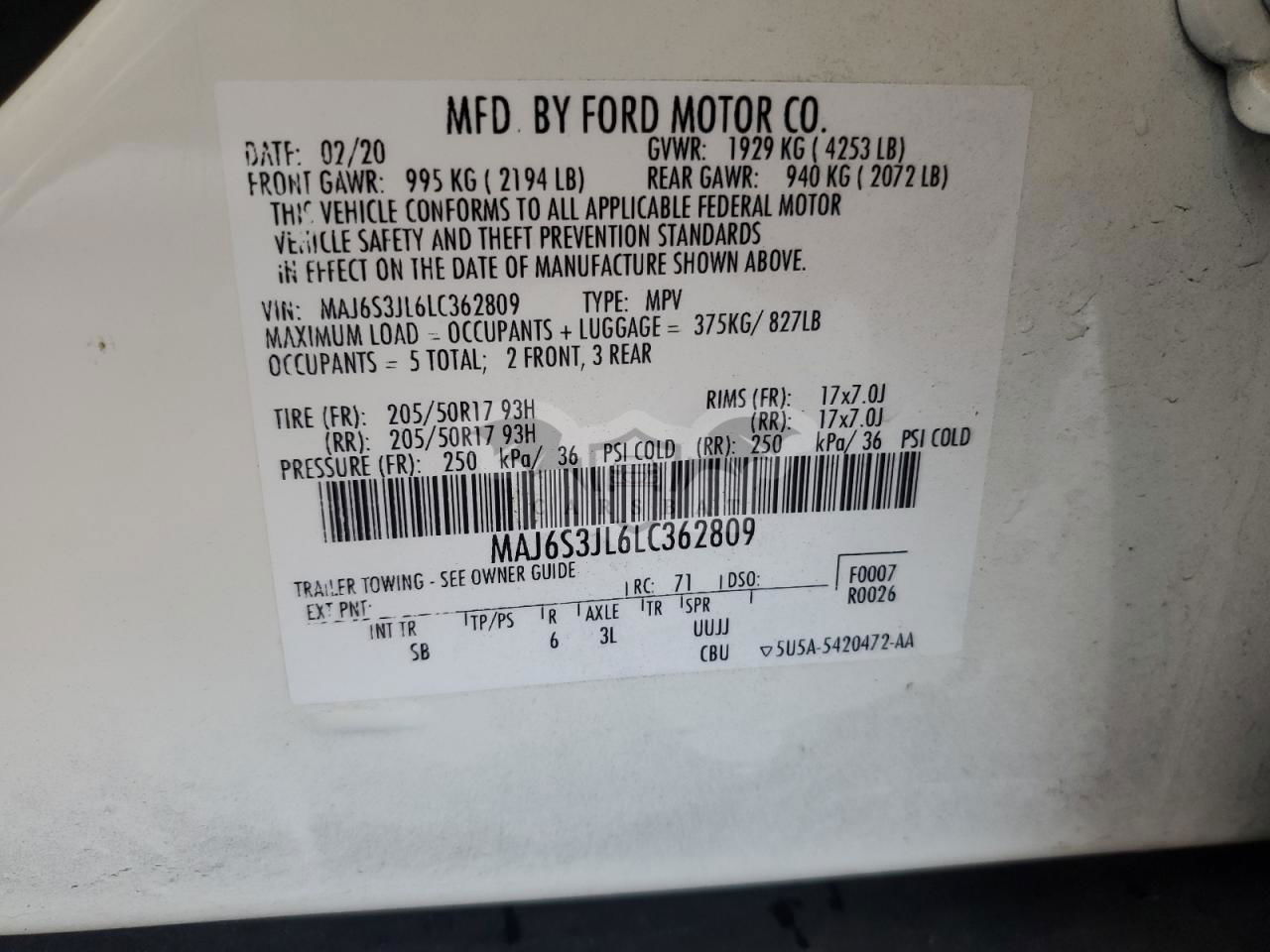 • VIN: MAJ6S3JL6LC362809