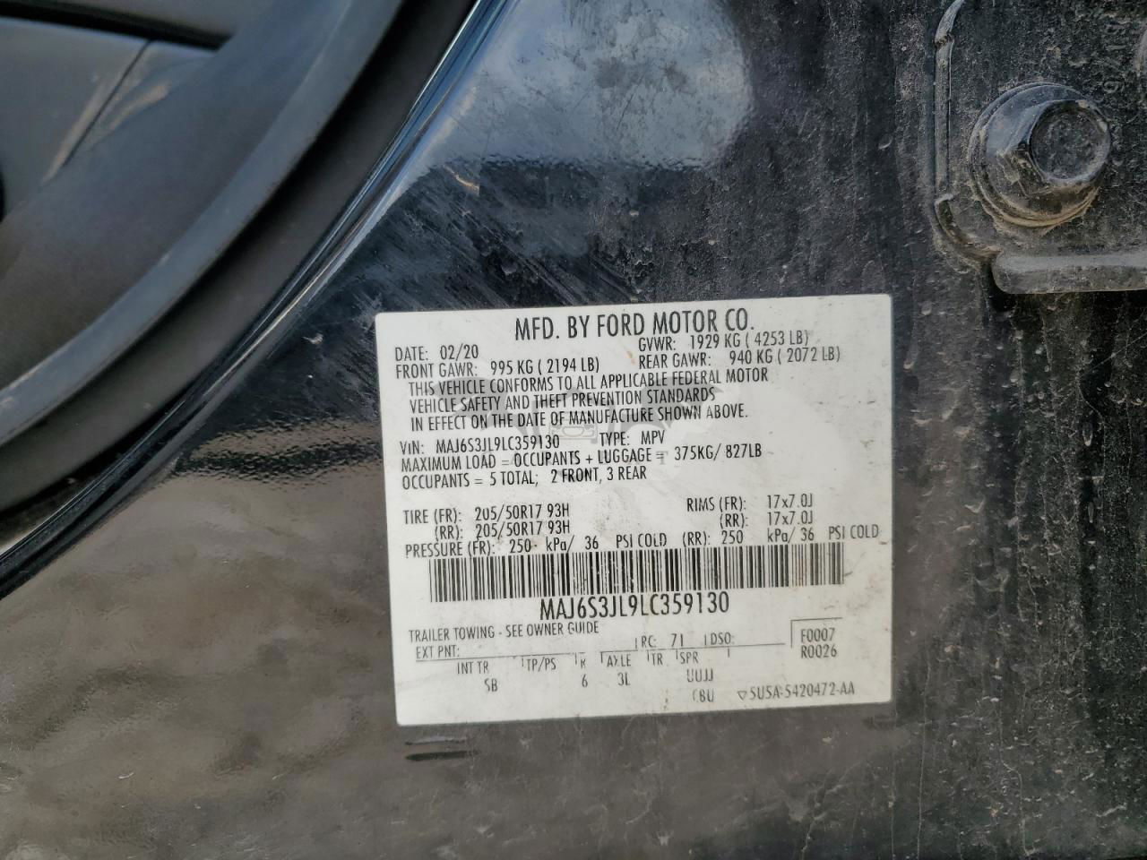 • VIN: MAJ6S3JL9LC359130