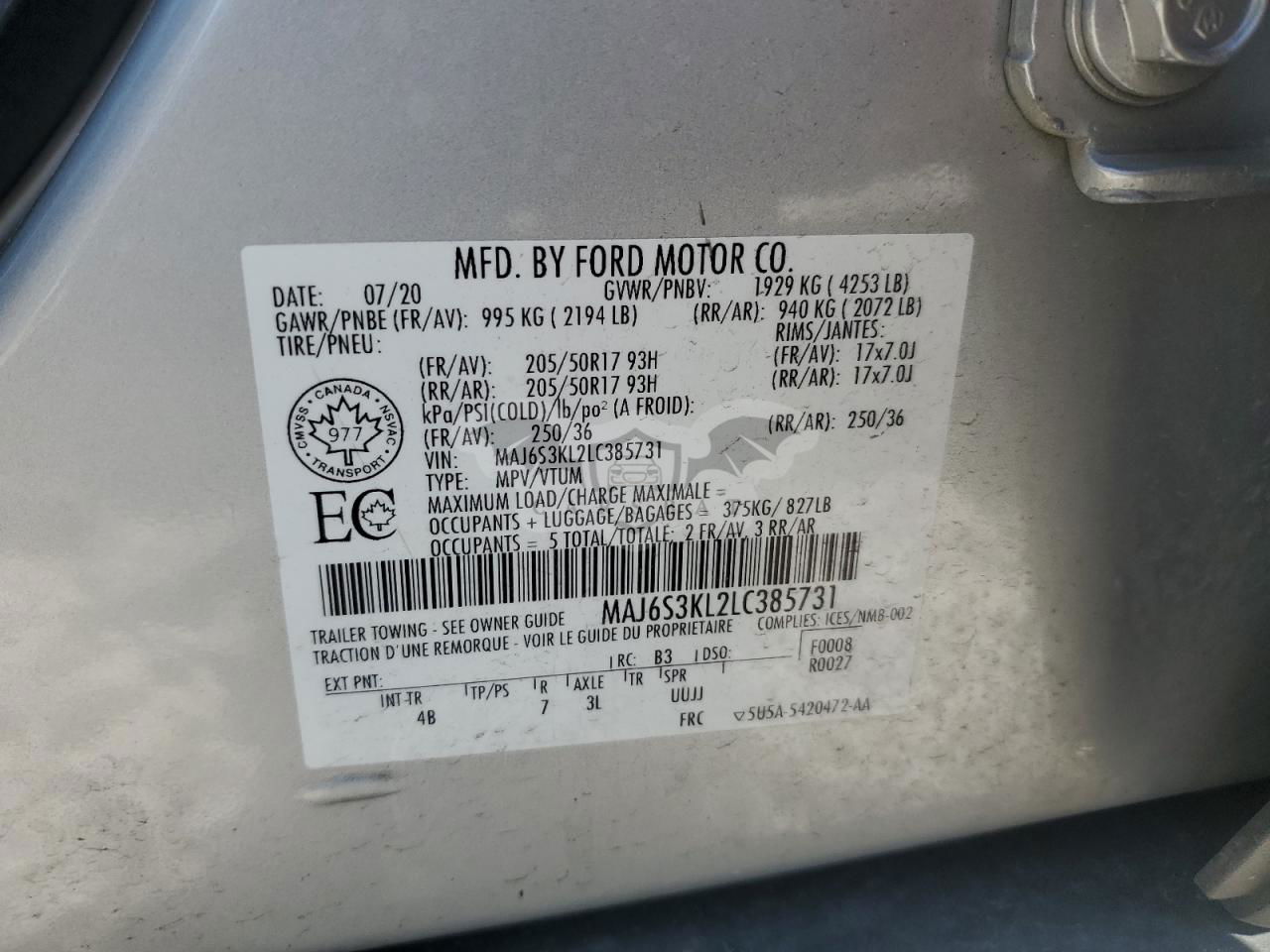 • VIN: MAJ6S3KL2LC385731