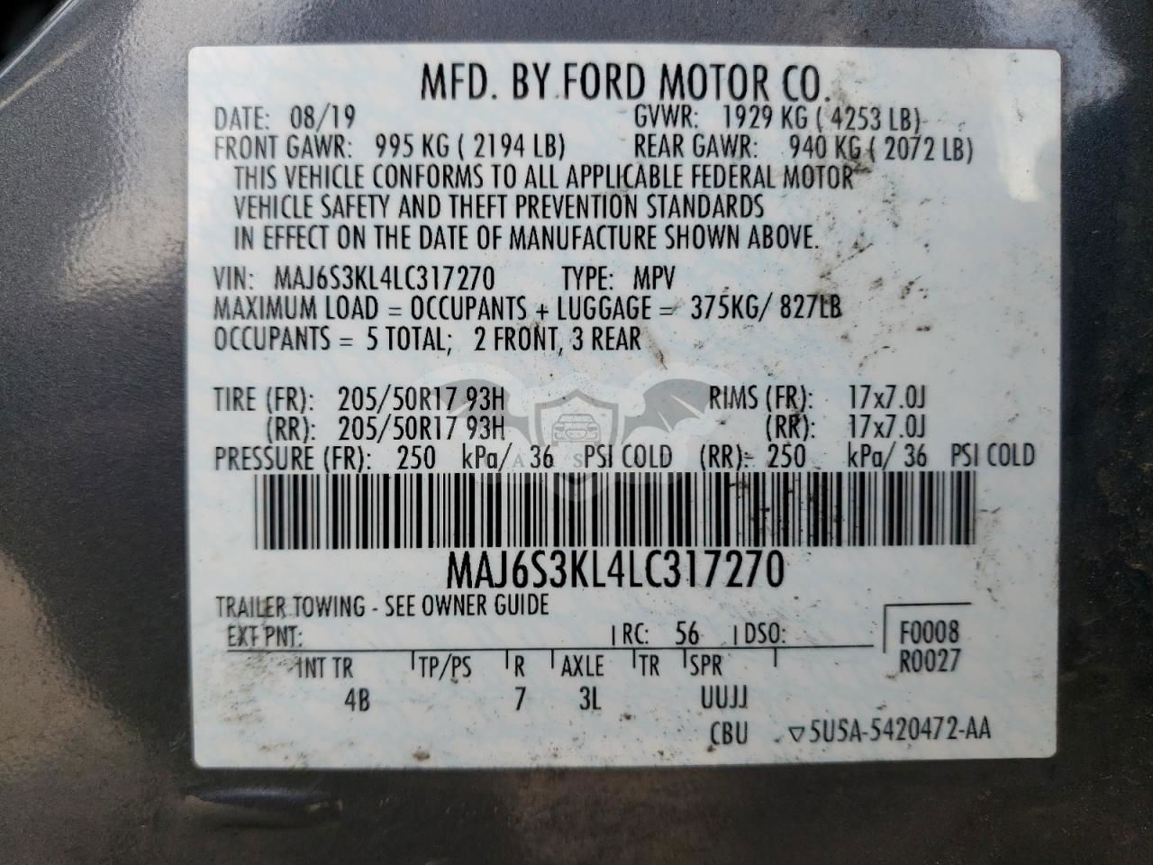 • VIN: MAJ6S3KL4LC317270