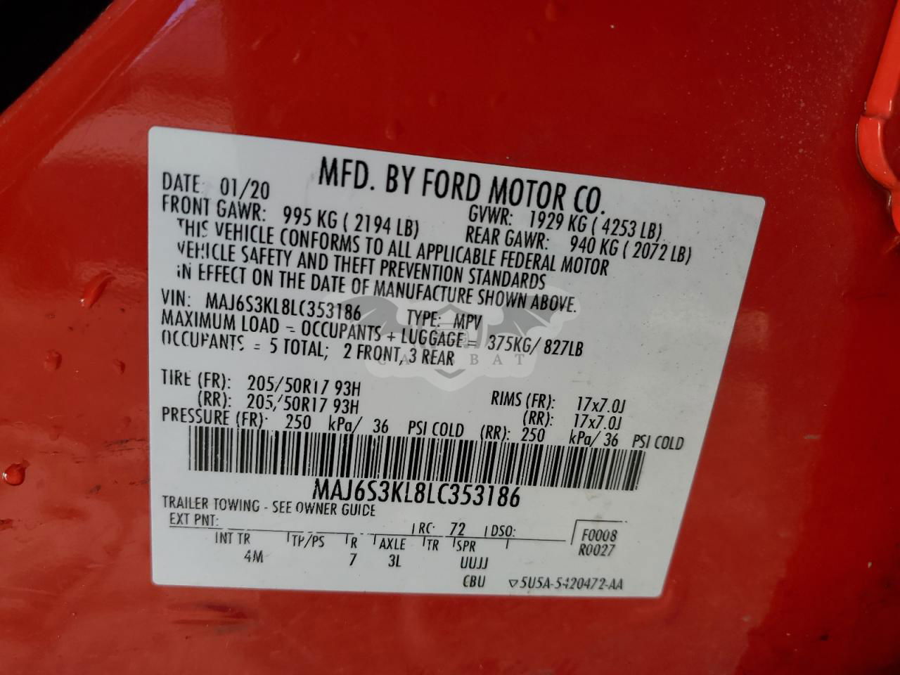 • VIN: MAJ6S3KL8LC353186