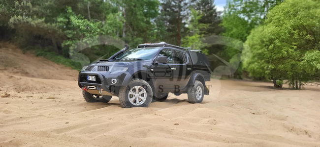 Mitsubishi L200 polift 2013 z polskiego salonu, jestem drugim właścicielem od 5 lat. (Do auta mam przyczepkę towarową DMC 650, łączne DMC 3.5t, bez viatol) Podstawowe dane techniczne: DMC – 2850 Masa własnai: 2100kg. Wymiary auta: Długość 492cm, szerokość bez lusterek: 178cm, wysokość (bez sprzętu na dachu) 194cm Wymiary przestrzeni ładunkowej: Długość 125cm, szerokość 147cm, wysokość 93cm, wysuwana płyta 101x101cm Prześwit z przodu 32cm, z tyłu pod główką mostu 25cm Wyposażenie: - 6 poduszek powietrznych (kierowcy i pasażera, boczne w fotelach i kurtyny) - Skrzynia automatyczna z tiptronic - System kontroli trakcji z „trybem terenowym”. - Napęd oczywiście Superselect – możemy używać napędu na 4 koła podczas jazdy po asfalcie - Klimatronik – świeżo po pełnym serwisie - Skórzana tapicerka oryginalna mitsubishi z nowszej generacji, fotel kierowcy elektrycznie sterowany - Czujnik deszczu – automatyczne wycieraczki - Czujnik zmierzchu – automatyczne światła - Tempomat ze sterowaniem z kierownicy - Radio z aux i sterowaniem z kierownicy - Komputer pokładowy - Lusterka boczne podgrzewane, elektrycznie ustawiane i składane - 4x elektryczne szyby - Opuszczana szyba tylna - CB Radio i antena firmy President - Uchwyt na tablet RAM Mount - Uchwyt na telefon IOttie Modyfikacje: - Wygłuszone wnętrze matami Bitmat, całe wnętrze łącznie z deską, wszystkie drzwi, dach i tylna ściana zostały wyjęte, podłoga oczyszczona z oznak rudej, zabezpieczona podkładem epoksydowym. Całość wygłuszona matami butylowymi i piankowymi. Przednia tapicerka drzwi wymieniona na tą z Pajero Sport. - Pełny komplet zawieszenia Lovells +2 cale łącznie z resorami, bez jakichkolwiek podkładek, biedaliftów. Resory na wiosnę zostały ogarnięte – rozebrane, przeszlifowane, pomalowane, posmarowane. - Koła 33 cale: alufelgi oem mitsubishi, opony Cooper ST Maxx 255/80r17. Bez żadnych dystansów itd. - nic nie obciera, wszystko współgra. Na zapasie zgodnie ze sztuką również takie samo koło. - Customowa płyta pod wyciągarkę z płytą osłonową aluminiową i uchwytami na szekle. Płyta wpasowana w miejsce oryginalnej dolnej dokładki zderzaka. Wyciągarka 12500 z liną syntetyczną 28m i pilotem bezprzewodowym. Dostęp do sprzęgła wyciągarki, widoczność liny. - Bullbar firmy Steeler z homologacją - Bagażnik dachowy aluminiowy z poprzeczkami, mocowaniem na trapy ARB i łopatę. Poprzeczki z profili perforowanych, do dalszej rozbudowy. - Ledbar Osram VX1000 wkomponowany w bagażnik dachowy, cichy, niegwiżdżący, zabezpieczony przed amatorami cudzej własności. - Zamontowany komplet foteli skórzanych z nowszej generacji – bez żadnych modyfikacji mocowań, SRS – wszystko p&p. - Lampy przednie wnętrza pomalowane na czarno, ledowe kierunkowskazy, ledowe mijania (możliwość powrotu do oryginału), ledowe drogowe z postojowymi. - Przednie nadkola oryginalne w strukturze, przykręcane. - Boczne kierunki led - Snorkel firmy Snake 4x4 - Dodatkowe lusterka do jazdy w terenie (widać w nich tylne koła, świetnie sprawdza się w ciasnych miejscach i w miejskiej dżungli - Hak w standardzie amerykańskim, oczywiście dodaję w zestawie kulę z homologacją. - Gniazdo przyczepy 13 pin - Światła cofania LED - Porządne ledowe światło przeciwmgłowe z homologacją. - Dodatkowe oświetlenie pozycyjne na bagażniku dachowym. Zabudowa: - Została wykonana tak, aby maksymalnie możliwie skrócić tył pojazdu – rama niedotykana, nieskracana, na bazie oryginalnej ściany i podłogi. - Górna część jest z możliwością demontażu - Burta tylna otwierana pionowo w dół – pełny dostęp do przestrzeni ładunkowej. - Otwierane boczne klapy zamykane na zamek. - Tylna klapa zamykana na klucz z możliwością montażu centralnego zamka (klamka z nissana navary) - Relingi pod bagażnik lub namiot dachowy. - Wysuwana podłoga 101x101cm. - Błotniki firmy Domar - światła tylne w zabudowie z homologacją - Przestrzeń za nadkolami przewidziana do montażu dodatkowych kanistrów. Pod maską: - Intercooler firmy FMIC nad silnikiem, z wlotem na masce. Turbodziura w tym aucie praktycznie nie istnieje. - Filtr stożkowy marki Pipercross w airboxie - Oil Catch Can z filterkiem - Duży Akumulator 125ah, 950A - Zbiornik 5l na spryskiwacz - Zmodyfikowany wydech z uwagi na koło zapasowe Auto jest przeznaczone na rynek rosyjski, wyposażone w dogrzewacz silnika i przede wszystkim termostat skrzyni biegów – nie występuje problem wadliwego działania skrzyni w trakcie niskich temperatur, temat powszechny w egzemplarzach z zachodu. Podwozie i rama były od początku zabezpieczone przez poprzedniego właściciela, są w bardzo dobrym stanie, jednak na ramie widoczny na zdjęciu nalot rdzy. Ja tego nie robię, aby kupujący miał pełen wgląd w stan ramy i podwozia. Jedyny element ramy zabezpieczany przeze mnie to tył ramy, podczas montażu zderzaka oraz miejsce numeru VIN - jego czytelność jest wymogiem. Przez okres posiadania ramę cyklicznie (co 2-3 miesiące oraz po każdej błotnej kąpieli) myłem w środku karcherem z końcówką do rur. Przy każdym myciu nadwozia również myłem podwozie i ramę. Auto jest w pełni sprawne, jeżdżące, gotowe do drogi, jednak po zakupie sugerowałbym: - pełny serwis olejowy - wymiana rozrządu wraz z regulacją zaworów - zabezpieczenie ramy i podwozia Czyli standardowe czynności po zakupie auta. Dodatkowo, uczciwość nakazuje mi wskazać nieuniknione minusy auta: - Sporadycznie pojawia się błąd kontroli trakcji, auto dalej jeździ, nie ma trybu serwisowego, ale błąd jak się pojawia, tak znika – od kilku miesięcy jest nieobecny, ale moim obowiązkiem jest o tym powiedzieć. Sporo czasu spędziłem na walce z tym, ale prawdopodobnie powód jest prozaiczny – ciśnienie w kołach, jeśli zaniedbamy, to przy tak dużych kołach pojawiają się różnice w prędkości obrotowej. Problem może by