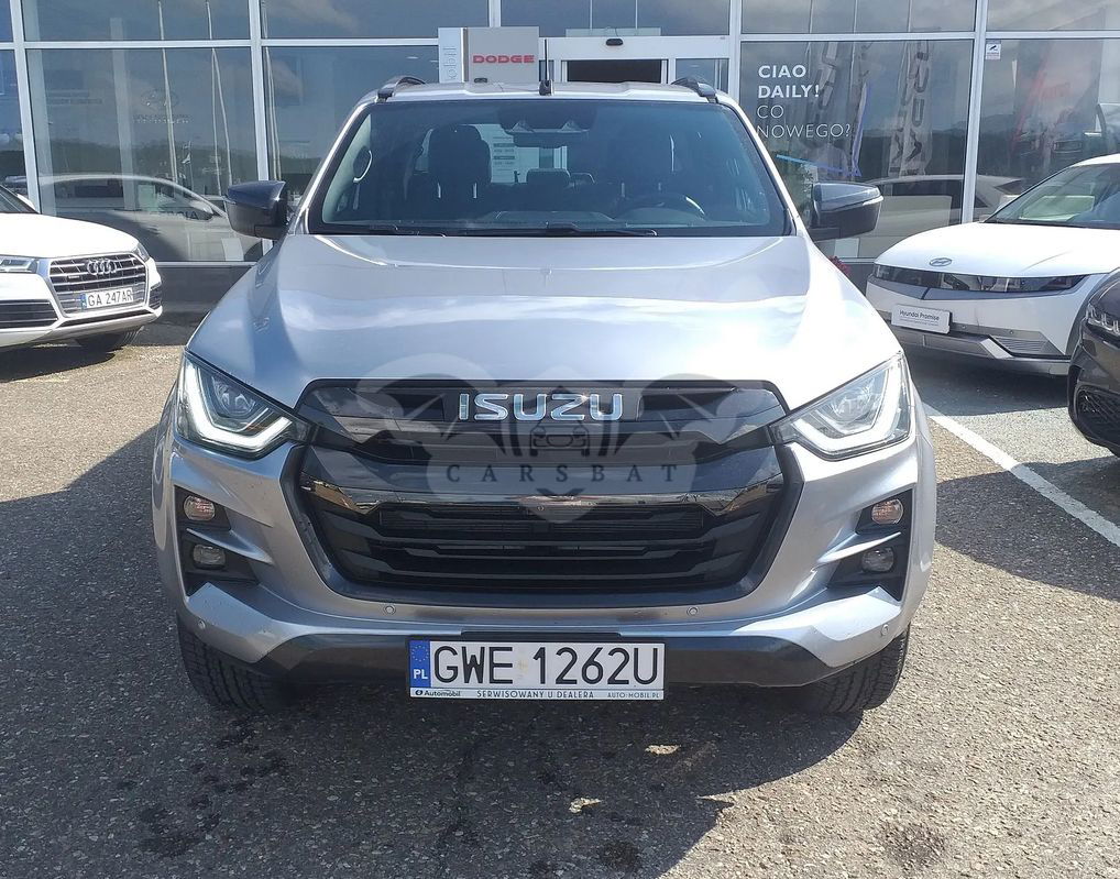 Autoryzowany dealer i serwis AUTO-MOBIL SP. Z O.O. oferuje na sprzedaż auto ciężarowe ISUZU D-MAX w wersji LSE. Samochód demonstracyjny dealera. Wyposażenie standardowe: - zaawansowane systemy wspomagania kierowcy, - ABS z EBD i Asystentem Hamowania BA, - System Stabilizacji Toru Jazdy ESC, - Hamulec pokolizyjny, - Ostrzeganie o awaryjnym hamowaniu, - System Kontroli Trakcji TCS, - Asystent wjazdu HSA / Asystent zjazdu HDC, - Poduszka powietrzna czołowa kierowcy i pasażera, boczne, kurtynowa, kolanowa kierowcy, - Centralna poduszka powietrzna, - Czujniki parkowania przód i tył, - Kamera cofania, - Tempomat adaptacyjny - Czujnik deszczu oraz zmierzchu, - Światła dzienne LED, - Światła główne w technologii Bi-Led, - Światła przeciwmgielne LED, - Tapicerka skórzana, - Fotele przednie podgrzewane, - Bezkluczykowy dostęp do samochodu, - Bezkluczykowe uruchamianie samochodu. Pojazd można doposażyć w dodatkowe oryginalne akcesoria, m.in.: - roleta aluminiowa, - zamek centralny tylnej burty, - hardtop, - wykończenie przestrzeni ładunkowej, - dodatkowe zabezpieczenie podwozia - zestaw osłon aluminiowych lub stalowych podwozia, - hak holowniczy, - wyciągarka z płytą montażową w przednim zderzaku - i wiele innych.. Dane techniczne: - silnik 1.9 diesel, moc 163KM, - moment obrotowy 360Nm w zakresie 2000-2500 obrotów/minutę, - norma spalania Euro 6D z Ad Blue obowiązująca od 01/01/2021, - zdolność do holowania przyczepy o DMC 3500 kg, - prześwit z tyłu 24 cm (pod główką mostu) - głębokość brodzenia 80 cm, - napęd 4x4 wybierany ręcznie z możliwością blokady tylnego mostu, - homologacja pojazdu ciężarowa. Dodatkowo oferujemy liczne formy finansowania zakupu pojazdu oraz atrakcyjne pakiety ubezpieczeń. Kontakt bezpośredni do działu sprzedaży -