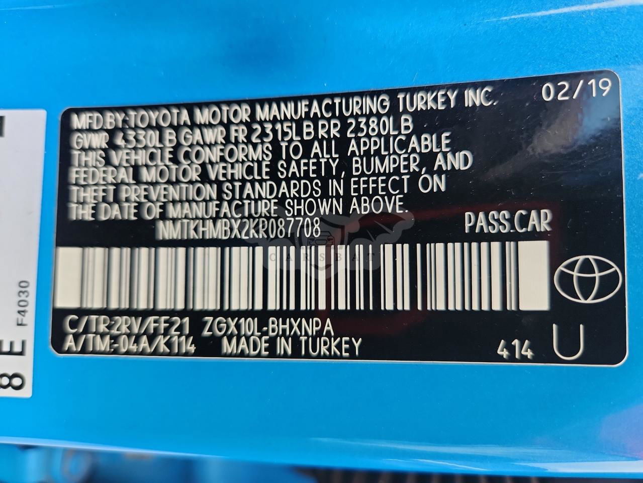 • VIN: NMTKHMBX2KR087708