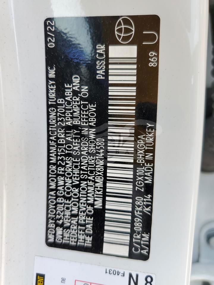 • VIN: NMTKHMBX8NR144580