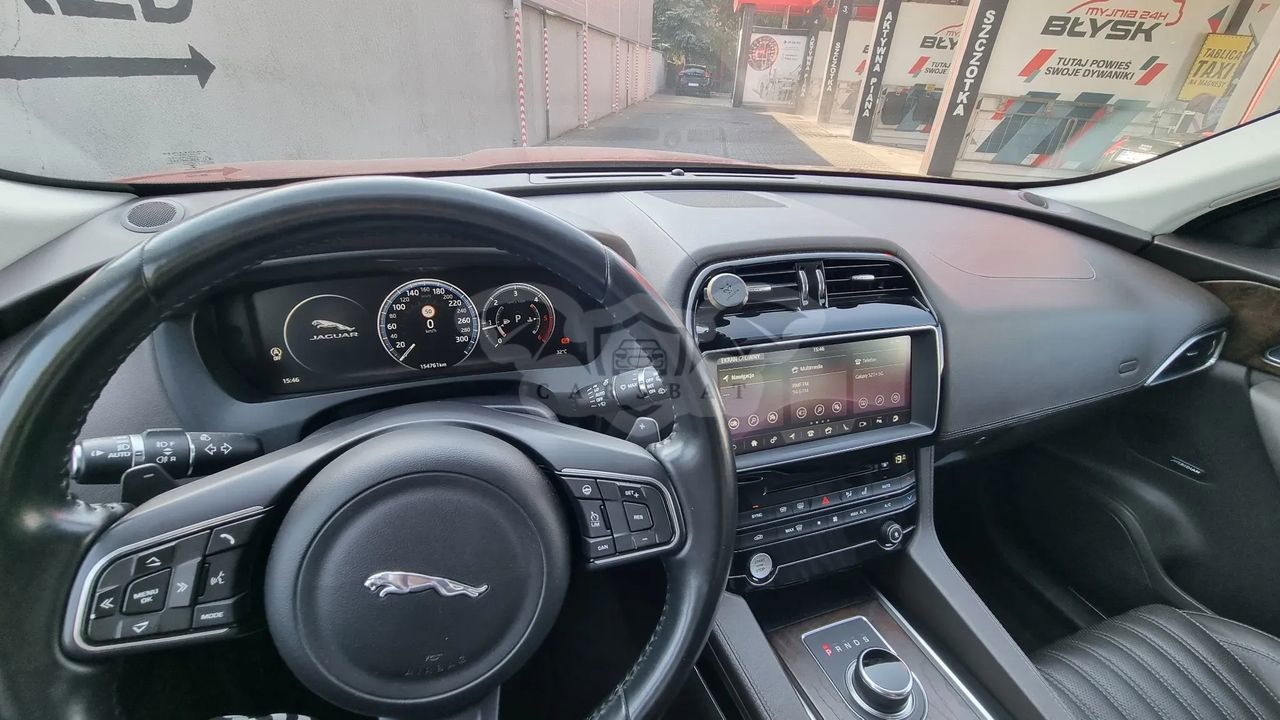 Sprzedam pięknego, użytkowanego prywatnie Jaguara F-Pace. Jest to niezwykle komfortowy samochód wyposażony we wszystko co można sobie tylko wyobrazić (z wyjątkiem foteli z masażem i szyberdachu). Auto kupione w Polsce w salonie M.Karlik Sp. K. w Poznaniu za kwotę 320.000 zł. Serwisowane również u tego samego dealera do końca gwarancji. Następnie w najlepszym niezależnym serwisie Jaguara i Land Rovera w Polsce firmie AUTOMLAND. Samochód na bieżące miał wykonywane wszelkie serwisy i naprawy. W ostatnich miesiącach dokonałem kilku wymian eksploatacyjnych. 1. Tarcze hamulcowe przód 2. Tarcze hamulcowe tył 3. Klocki hamulcowe przód 4. Klocki hamulcowe tył 5. Filtr kabiny 6. Filtr powietrza 7. Filtr oleju 8. Olej 9. Czujniki zużycia klocków Ponadto wymieniłem: 1. Turbosprężarkę 2. Filtr DPF 3. Katalizator 4. Drążki kierownicze W czerwcu tego roku uszkodziłem kolumnę kierownicy. Szkoda zastała naprawiona w ramach ubezpieczenia Auto Casco w Serwisie Jaguara Karlik. Także, na ten moment nie ma żadnych elementów, które w najbliższym czasie mogłyby wymagać naprawy. Samochód jest w doskonałej kondycji. Jedyna wada jaką posiada, to lekko pęknięta przednia szyba. Koszt wymiany ok. 2.500 zł. naprawa ok. 200 zł. Nie naprawiałem świadomie, aby ktoś mi nie zarzucił przy sprzedaży, że chciałem to ukryć. W zeszłym, roku dokonałem regeneracji lakieru i jego zabezpieczenia powłokami ceramicznymi w firmie Uberdetaling. Lakier do tej pory wygląda jakby auto wyjechało dopiero w salonu. Oczywiście samochód jest w pełni bezwypadkowy, a jedyna przygoda, to drobna szkoda parkingowa naprawiona oczywiście u Karlika. Samochód jest bardzo doinwestowany i niezwykle zadbany. Nigdy nie był umyty w automatycznej myjni. Zarówno w środku jak i na zewnątrz wygląda jak nowy. Z ciekawszych elementów wyposażenia można wymienić: 1. Podgrzewana przednia szyba 2. Podgrzewane siedzenia przednie i tylne, 3. Podgrzewana kierownica, 4. Elektryczna regulacja siedzeń przednich i tylnych, 5. Czujnik martwego punktu, z funkcją wykrywania ruchu przecinającego drogę cofania, 6. Doskonały system nagłośnienia Meridian Sound System, 7. Skórzana tapicerka w kolorze Espresso, 8. Klapa bagażnika otwierana i zamykana elektrycznie gestem i z kluczyka, 9. Schowek naprzeciw pasażera chłodzony, 10. System rozpoznawania znaków 11. Relingi dachowe, 12. Lusterka zewnętrzne – elektrochromatyczne, elektrycznie regulowane, ogrzewane, składane z lampami doświetlającymi podłoże i wbudowanymi kierunkowskazami, 13. Lusterko wewnętrzne elektrochromatyczne, 14. System kamer wspomagających parkowanie. Kamera z widokiem z przodu, obu boków i tyłu, 15. Trzy tryby jazdy, Dymamic, Normal i Eco, 16. Felgii aluminiowe 19” Razor 7 ramienne, 17. Lampy w technologii LED ze światłami LED do jazdy dziennej, a automatycznym włączaniem świateł drogowych, 18. Manetki zmiany biegów przy kierownicy, 19. Dwa komplety opon letnie i zimowe. I wiele, wiele innych.