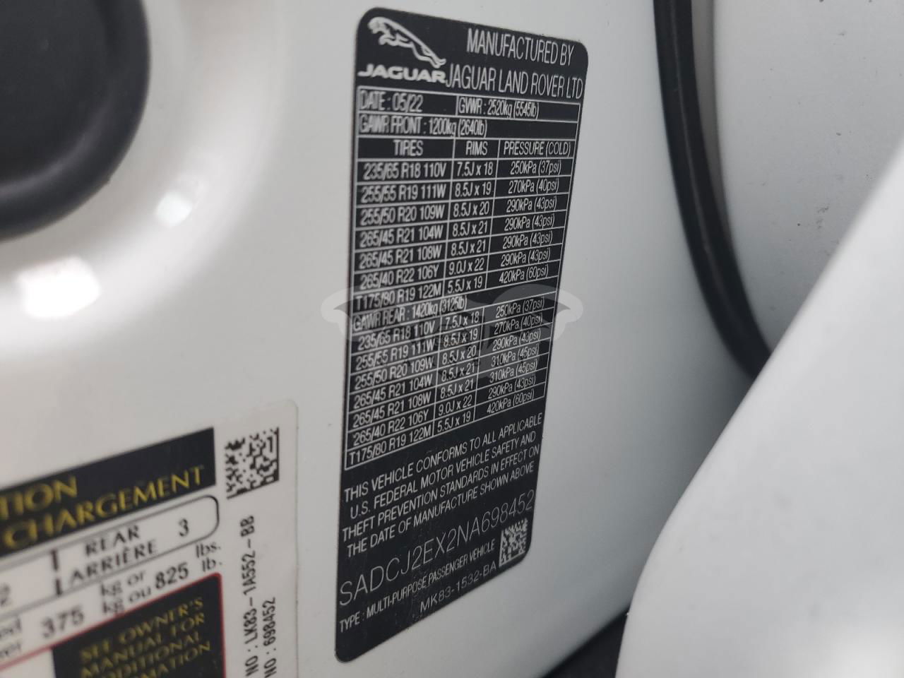 • VIN: SADCJ2EX2NA698452