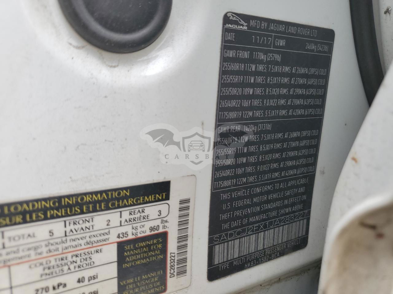 • VIN: SADCJ2FX1JA283227