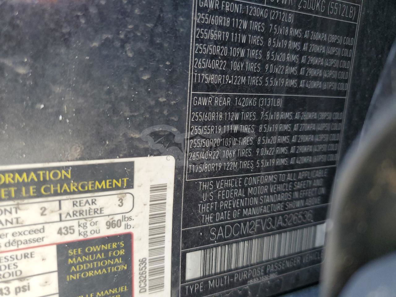 • VIN: SADCM2FV3JA326536