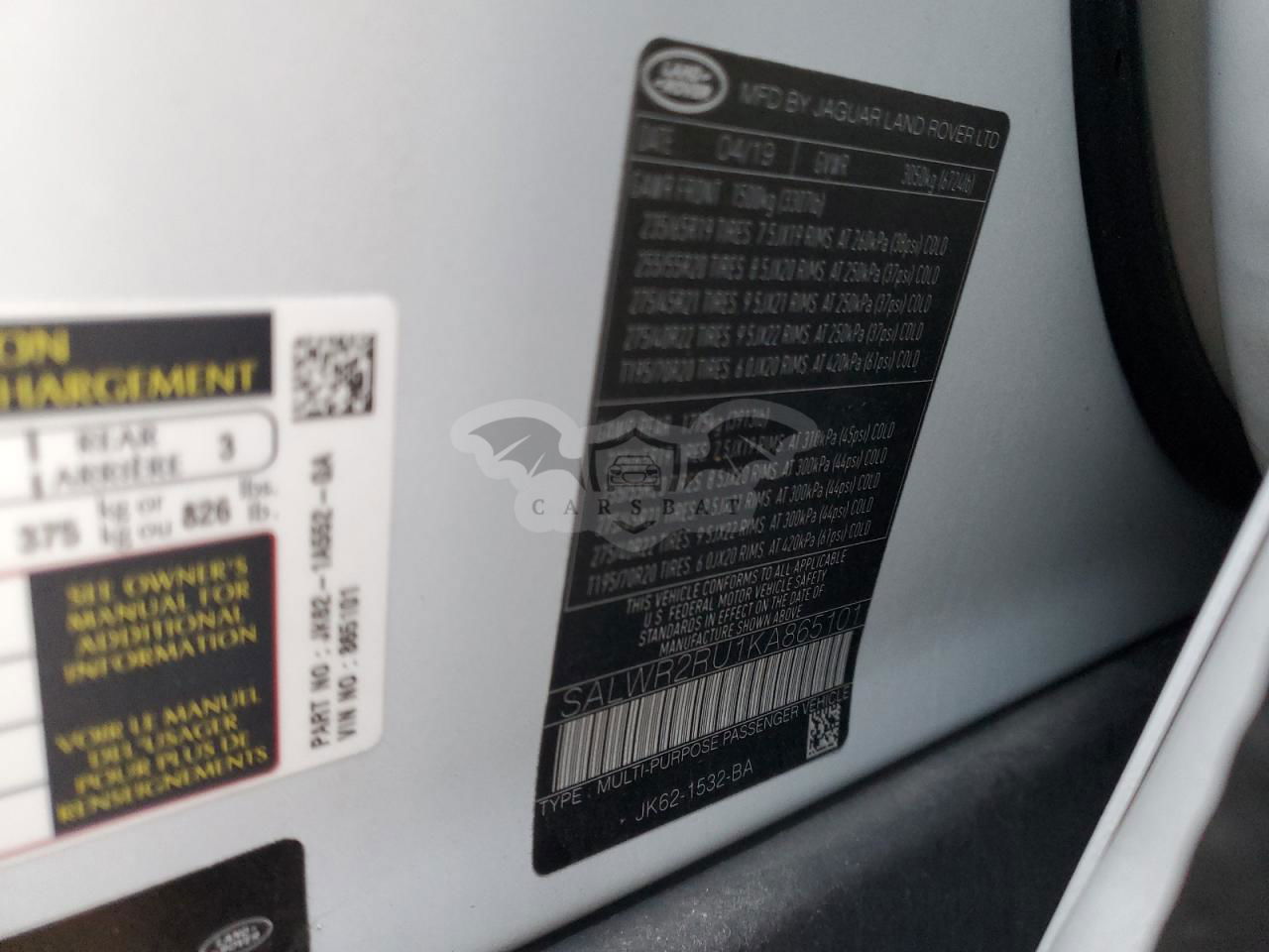 • VIN: SALWR2RU1KA865101