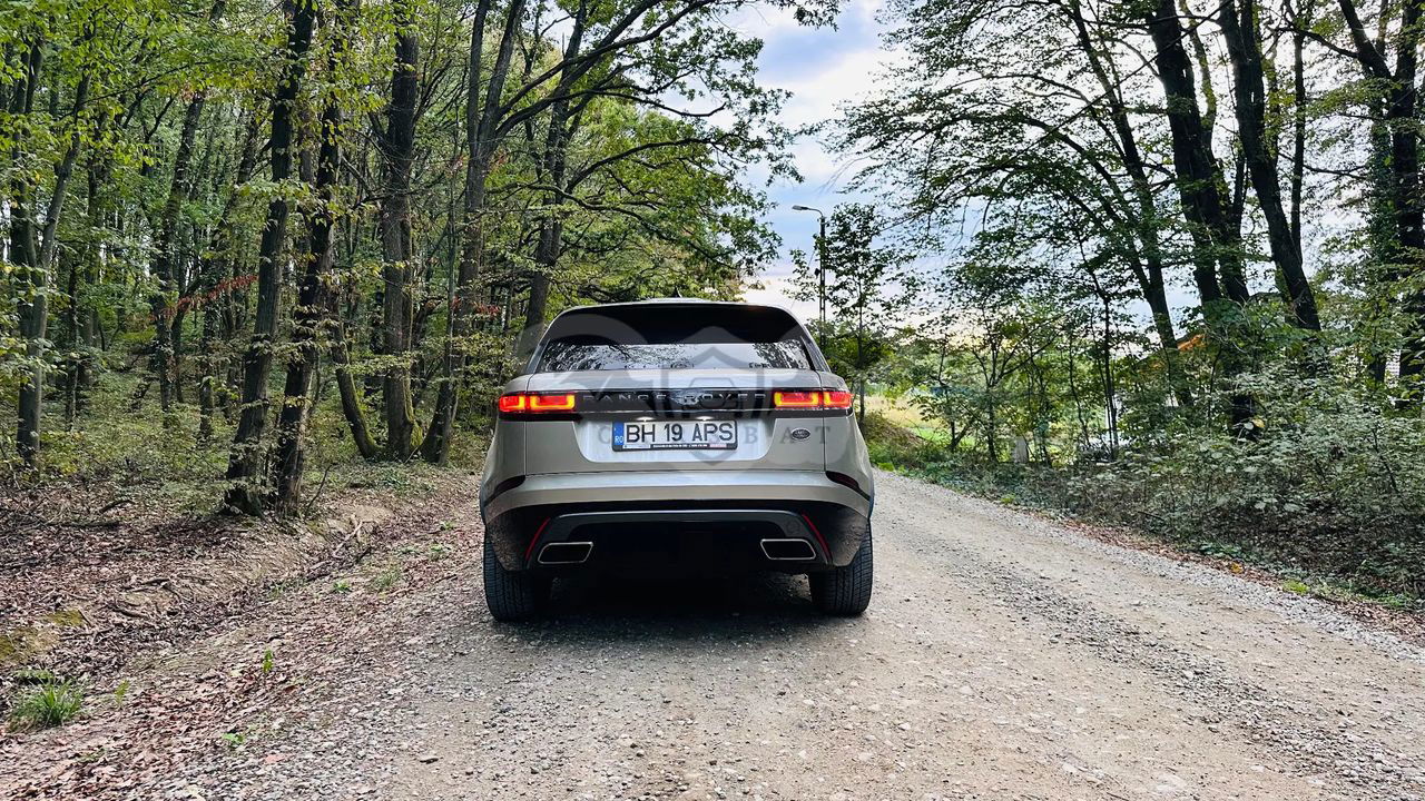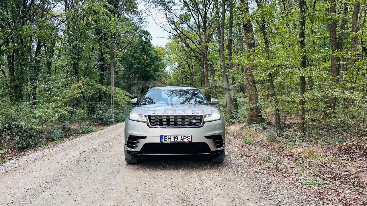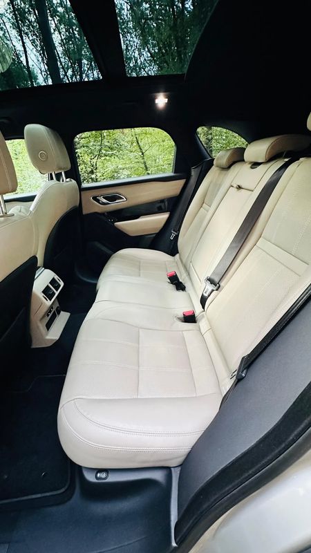 Srebrny Land Rover Range Rover Velar 2018 roku | Benzyna