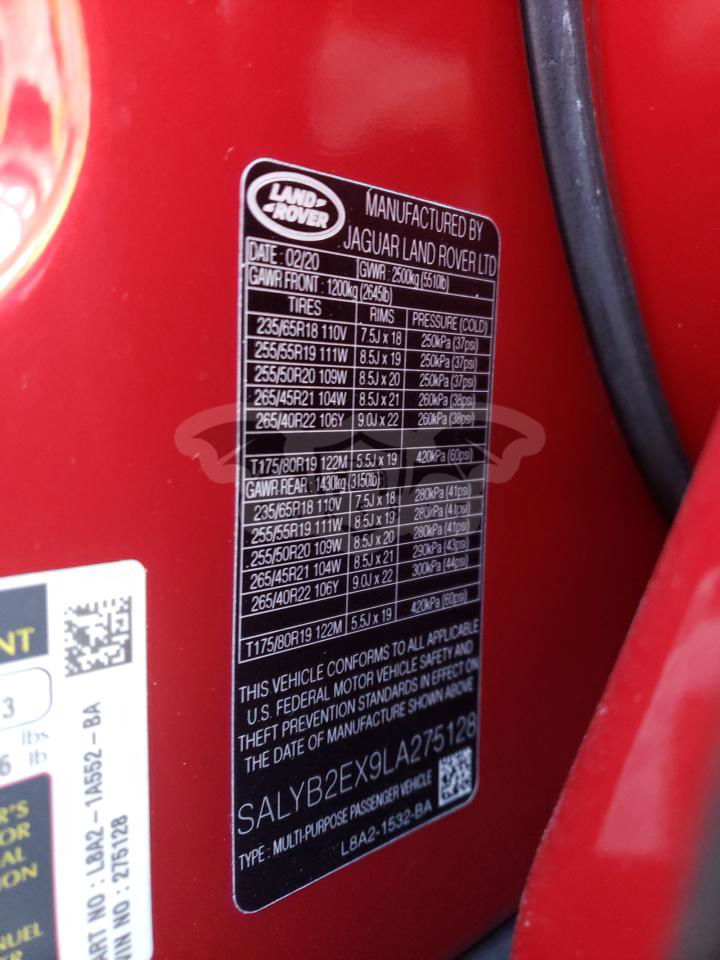• VIN: SALYB2EX9LA275128