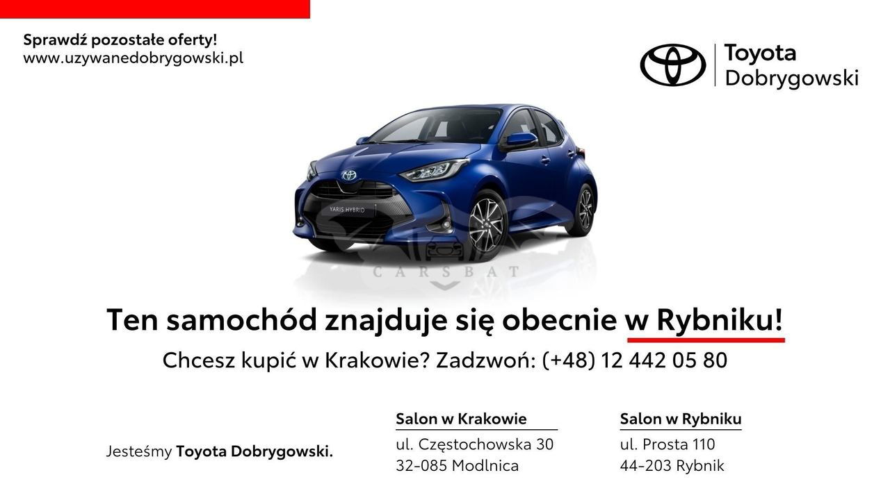 TOYOTA DOBRYGOWSKI to Autoryzowany Dealer marki Toyota i Lexus, firma działająca na rynku motoryzacyjnym od ponad 25 lat, ciesząca się ogromnym uznaniem klientów odwiedzających nasze salony ( nagradzane wielokrotnie mianem Dealera Roku) mieszczące się w kilku największych miastach Polski . Pragniemy Państwa zaprosić do odwiedzin naszego najnowszego i największego oddziału w tej części kraju mieszczącego się w Rybniku, będącego unikatowym połączeniem marki Lexus i Toyota w jednej lokalizacji, gdzie stworzyliśmy dla Państwa obszerną ofertę z zakresu wielu segmentów sprawdzonych pojazdów używanych dostępnych dla szczególnie wymagających klientów. Oferujemy Państwu: + Szczegółowo sprawdzone samochody wielu marek i segmentów z możliwością wglądu do protokołu technicznego. + Oględziny pojazdu w komfortowych warunkach, nawet pomimo późnej pory lub złych warunków atmosferycznych. + Kompleksowa obsługa finansowa: ubezpieczenia, kredyty, leasingi itp. + Możliwość pozostawienia w rozliczeniu samochodu dowolnej marki bez względu na wiek, przebieg i stan techniczny. + Wykwalifikowani i sympatyczni doradcy. + Możliwość zwrotu samochodu do 30 dni w przypadku braku zadowolenia z zakupu. Zapraszamy do zapoznania się z ofertą pojazdu: Toyota Avensis Rok produkcji 2018 Kraj pochodzenia Polska Data pierwszej rejestracji 2018-09-25 Przebieg 126 408 km Typ silnika DIESEL Pojemność 1995 ccm Skrzynia biegów 6 stopniowa manualna Typ nadwozia Kombi Moc 143 KM Napęd Na przednie koła Liczba drzwi 5 Liczba miejsc 5 Kolor lakieru Beżowy Metalik Tapicerka Skórzana, Kolor Czarny Dodatkowe parametry - Faktura VAT - Możliwość finansowania - Zarejestrowany w Polsce - Pierwszy właściciel Wyposażenie Bezpieczeństwo - ABS - ASR (kontrola trakcji) - Asystent pasa ruchu - Czujnik deszczu - ESP (stabilizacja toru jazdy) - Isofix - Ogranicznik prędkości - Poduszka powietrzna chroniąca kolana - Poduszka powietrzna kierowcy - Poduszka powietrzna pasażera - Poduszki boczne przednie - Światła do jazdy dziennej - Światła LED - światła led do jazdy dziennej - Światła przeciwmgielne Komfort - Bluetooth - Centralny zamek - centralny zamek sterowany pilotem - Czujniki parkowania przednie - Czujniki parkowania tylne - Elektrochromatyczne lusterko wsteczne - Elektryczne szyby przednie - Elektryczne szyby tylne - Gniazdo AUX - Gniazdo USB - Kamera cofania - Klimatyzacja automatyczna - Klimatyzacja dwustrefowa - Komputer pokładowy - Lusterka składane elektrycznie - MP3 - Nawigacja GPS - Podgrzewane lusterka boczne - Podgrzewane przednie siedzenia - Podłokietnik - Przyciemniane szyby - radio - Radio CD/MP3 z ekranem dotykowym - radio z ekranem dotykowym - Tapicerka skórzana - Tempomat - Wielofunkcyjna kierownica Wygląd zewnętrzny - Podświetlane miejsca na nogi Inne - Alarm - Alufelgi - Elektrycznie ustawiane lusterka - gwarancja - Immobilizer - kupiony w salonie - leasing - możliwość finansowania - napęd przedni - pierwszy właściciel - Radio fabryczne - Relingi dachowe - Światła ksenonowe - Wspomaganie kierownicy - wystawiamy fakturę VAT - właściciel niepalący - zarejestrowany w Polsce Powyższe ogłoszenie ma charakter informacyjny i nie stanowi oferty handlowej w rozumieniu art.66 §1 kodeksu cywilnego oraz innych przepisów prawnych.